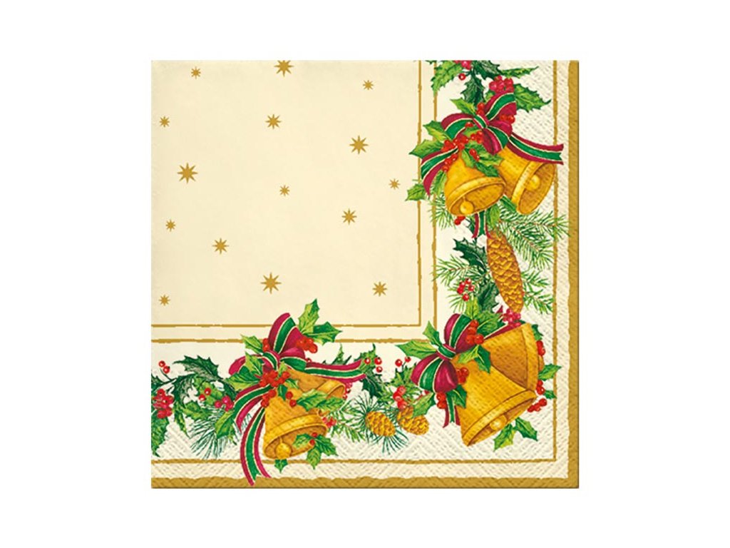 Vianočný obrúsok so zlatými zvončekmi a hviezdičkami Dodajte svojmu stolu nádych skutočného sviatočného kúzla. Tento obrúsok kombinuje motív tradičných zlatých zvončekov s cezmínou, šiškami a vetvičkami ihličia, doplnený jemnými hviezdičkami na krémovom podklade. Celkový dizajn pôsobí elegantne a slávnostne – presne tak, ako si vianočné chvíle zaslúžia. Obrúsok je vyrobený z kvalitného trojvrstvového papiera, takže je pevnejší než bežné papierové obrúsky. Skvele sa hodí na vianočné stolovanie, rodinné oslavy aj adventné posedenia, kde doladí atmosféru sviatočných dní. Rozmer: 33 × 33 cm Motív: zvončeky, hviezdičky Počet obrúskov v balení: 20 ks Uvedená cena je za 1 balenie (20 kusov).Dodatočné parametre