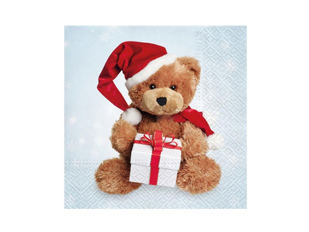 Vianočný obrúsok s medvedíkom a darčekom Roztomilý motív plyšového medvedíka v červenej čiapke a šále s bielym darčekom v rukách prinesie na váš stôl hravú a radostnú atmosféru Vianoc. Ideálna voľba pre sviatočné stolovanie s deťmi, rodinné oslavy alebo zimné posedenia s priateľmi. Obrúsok je trojvrstvový a uplatní sa nielen pri prestieraní, ale aj pri výrobe veselých dekorácií či tvorivých projektov. Rozmer: 33 × 33 cm Motív: vianočný medvedík Počet obrúskov v balení: 20 ks Uvedená cena je za 1 balenie (20 kusov).Dodatočné parametre