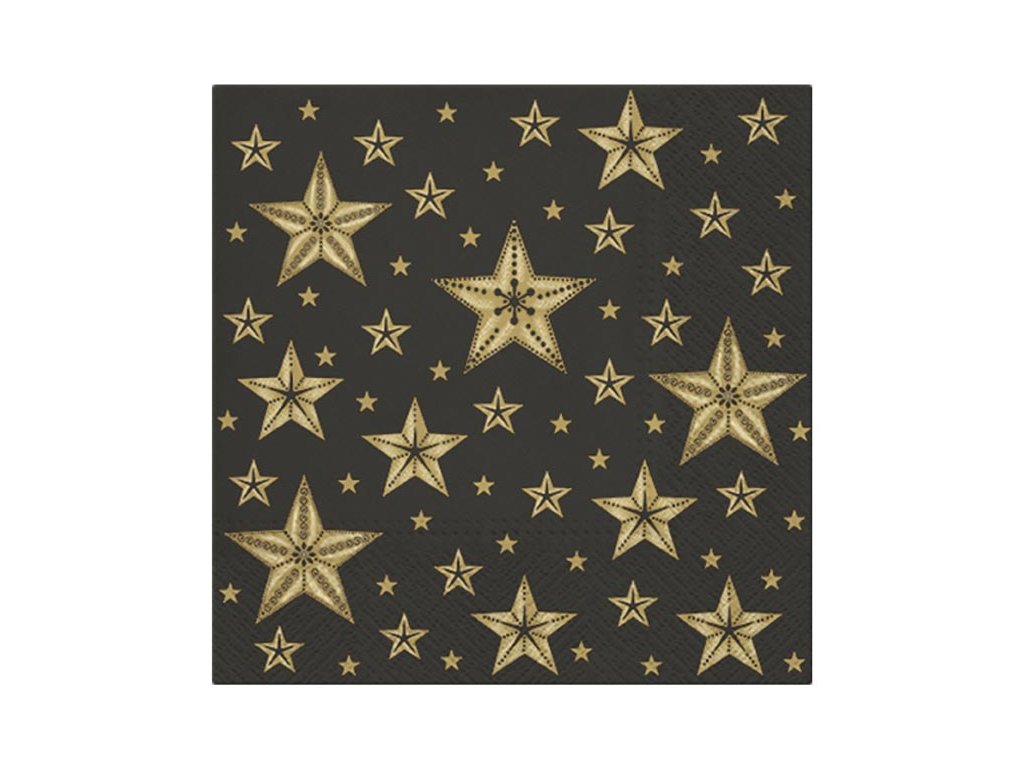 Vianočný obrúsok so zlatými hviezdami Výrazný kontrast čierneho podkladu a zlatých hviezd robí z tohto obrúska elegantný doplnok sviatočného prestierania. Motív pôsobí moderne, slávnostne a skvele sa hodí k prestieraniu v kombinácii s bielym alebo zlatým riadom. Obrúsok je vyrobený z trojvrstvového papiera, takže je pevný. Využijete ho pri prestieraní aj ako súčasť zimných dekorácií. Motív: hviezdy Rozmer: 33 × 33 cm POČET OBRÚSKOV V BALENÍ: 20 ks Uvedená cena je za 1 balenie (20 kusov).Dodatočné parametre