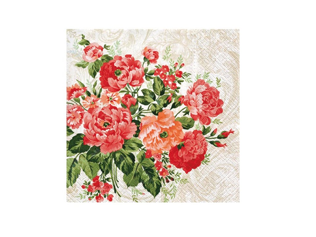 Celoročný obrúsok s pivonkami Váš stôl si zaslúži rozkvitnúť. Tento obrúsok s pivonkami vnesie do stolovania radosť aj eleganciu v podobe bohatej kytice červených, koralových a oranžových kvetov. Motív plný života pôsobí slávnostne aj romanticky a okamžite premení každú tabuľu na záhradu plnú farieb. Kvalitné trojvrstvové prevedenie zaručuje pevnosť, jemný dotyk a spoľahlivú savosť – ideálna kombinácia na oslavy, svadby aj každodenné stolovanie. A ak radi tvoríte, poteší vás, že tento obrúsok s kvetinovým motívom je perfektný aj na decoupage a kreatívne dekorácie. Motív: pivonky Rozmer: 33 × 33 cm POČET OBRÚSKOV V BALENÍ: 20 ks Uvedená cena je za 1 balenie (20 kusov).Dodatočné parametre