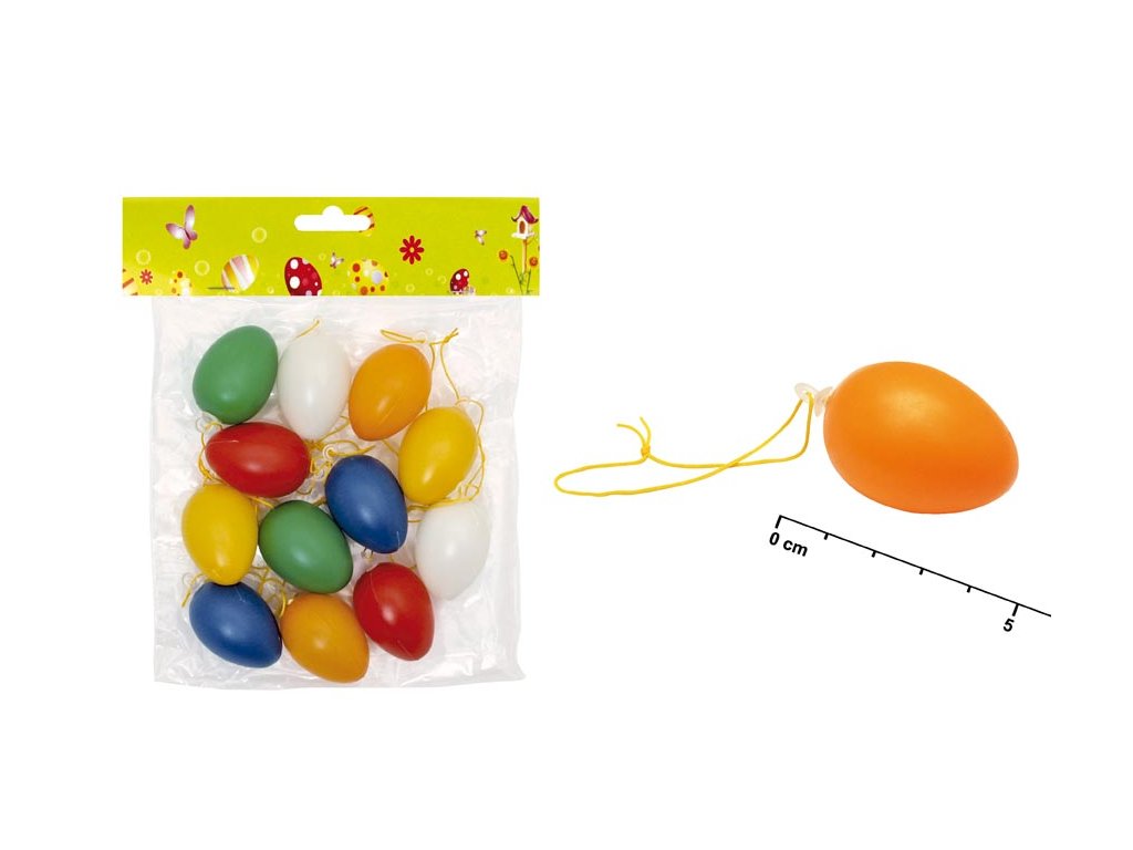Balenie obsahuje 12 plastových vajíčok. V každom balení sú 2 biele, žlté, oranžové, červené, modré a zelené vajíčka. Každé vajíčko má šnúrku na zavesenie. Veľkosť vajíčka je 4 cm. Uvedená cena je za 1 balenie.Dodatočné parametre