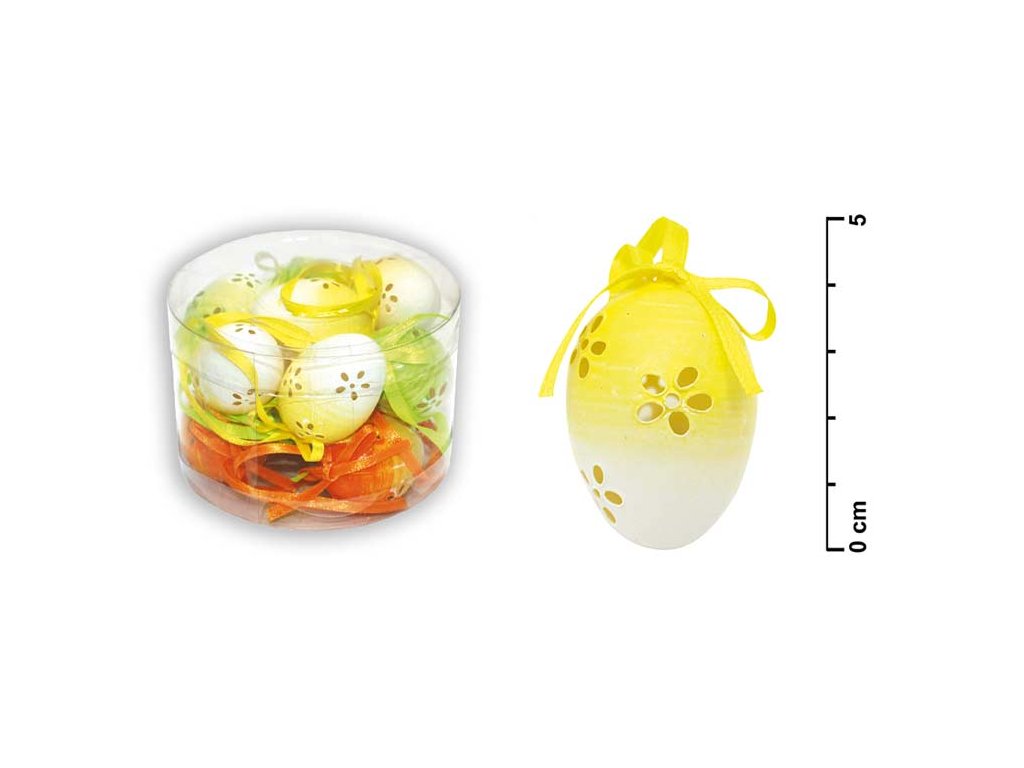 Balenie obsahuje 12 ks plastových vajíčok. Vajíčka sú zdobené dierkami v tvare kvetu. Každé vajíčko má šnúrku na zavesenie. Veľkosť vajíčka je 4 cm.Dodatočné parametre