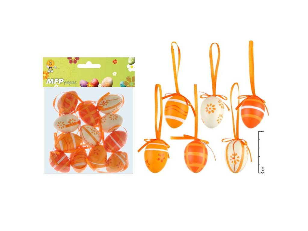 Veľkonočné plastové vajíčka s maľovanými motívmi, v oranžovej a bielej farbe. Vajíčka majú stužku na zavesenie. Vyzdobte si svoj domov krásnymi veľkonočnými vajíčkami, ktoré Vám vytvoria očarujúcu atmosféru Veľkej noci! Túto dekoráciu môžete použiť na dekorovanie veľkonočných vencov alebo vetvičiek. BALENIE OBSAHUJE: - 12 ks plastových vajíčok Veľkosť: 40 mm Farba: biela, odtiene oranžovej Dodávame v sáčku so závesom. Uvedená cena je za 1 balenie.Dodatočné parametre