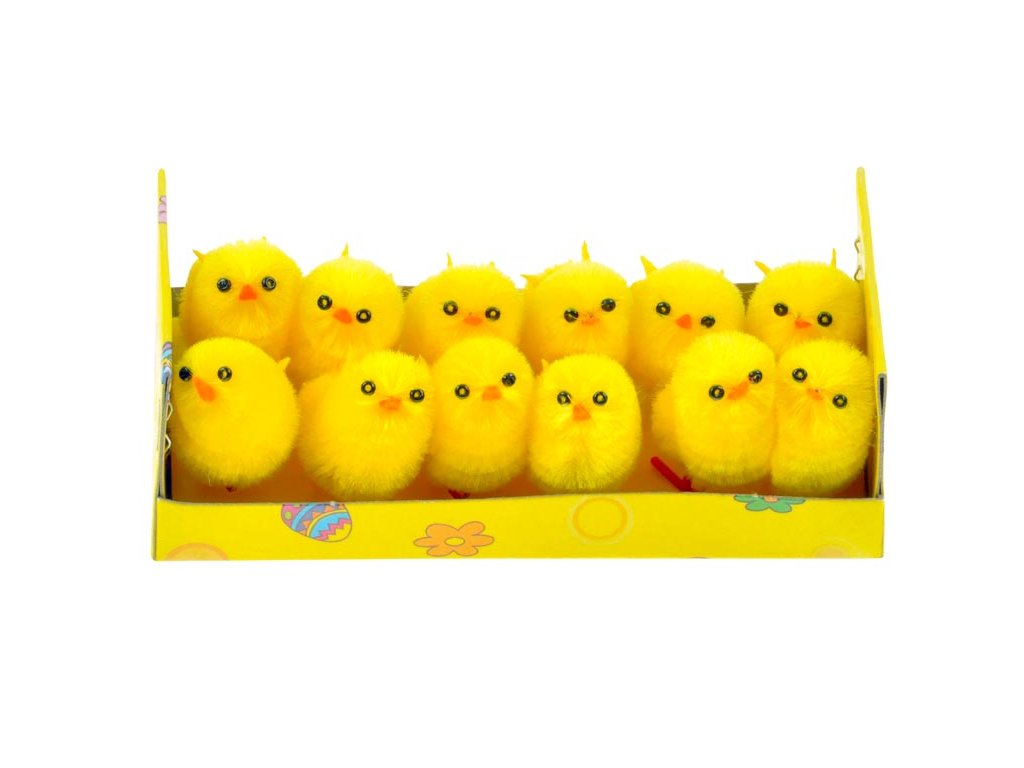 Veľkonočná dekorácia plyšové žlté kuriatka. Počet kusov v balení: 12 ks v škatuľke Uvedená cena je za súpravu 12 ks.Dodatočné parametre