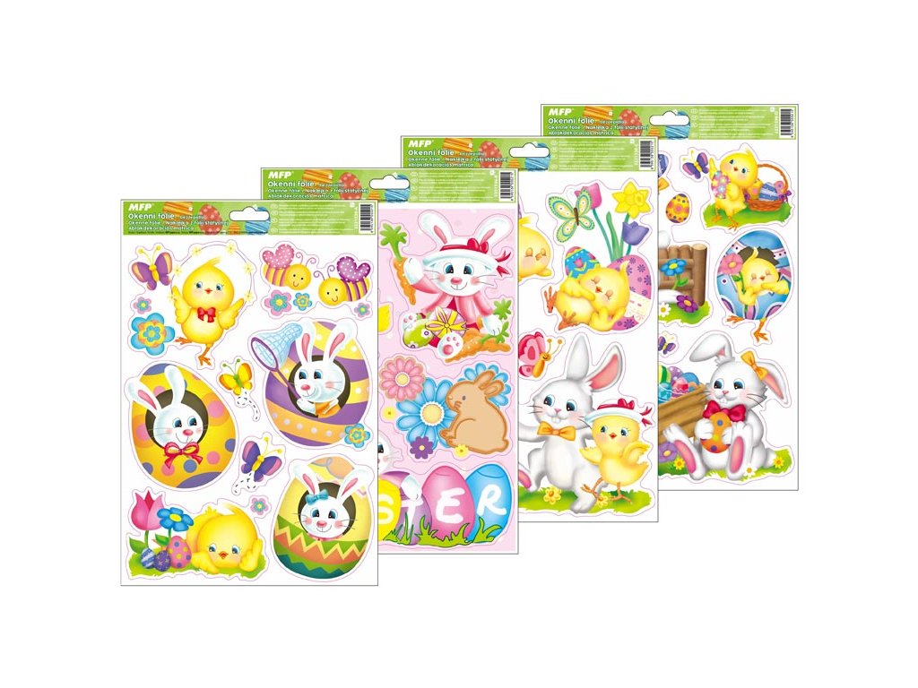 Okenná fólia veľkonočné kuriatka, vajíčka, motýliky, zajačikovia. Vyzdobte si okno týmito krásnymi samolepkami na okno. Vytvoria vám čarovnú atmosféru domova. NÁVOD: 1. Odlúpnite obrázok z podložky a umiestnite ho na čisté, prípadne navlhčené sklo tou stranou, ktorá je na podložke. 2. Obrázok elektrostaticky priľne. 3. Fólia sa ľahko odlúpne a môže sa aj premiestniť. Dodávame v mixe po 4 ks podľa skladových zásob. Uvedená cena je za 1 ks.Dodatočné parametre