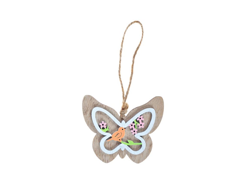 Veľkonočná drevená dekorácia 3D záves s motívom motýlika. Vyzdobte si byt veľkonočnými dekoráciami a tak privítajte sviatky jari. Túto dekoráciu môžete použiť na dekorovanie veľkonočných vencov alebo vetvičiek. Dekorácia obsahuje výrez s ďalšími veľkonočnými motívmi a šnúrku na zavesenie. Veľkosť: 10 cm Dodávame vo vrecku so závesom. Uvedená cena je za 1 ks.Dodatočné parametre