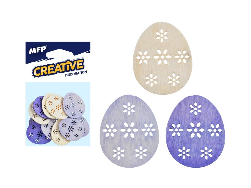 Veľkonočná dekorácia vajcia drevené, vyrezávané. Ozdobte si byt touto krásnou dekoráciou. Dekoráciu môžete použiť k aranžovaniu vencov a rôznych doplnkov do interiéru. BALENIE OBSAHUJE: -12 vajíčok (žlté, fialové, modré) Dodávame vo vrecku so závesom. Uvedená cena je za 1 balenie.Dodatočné parametre
