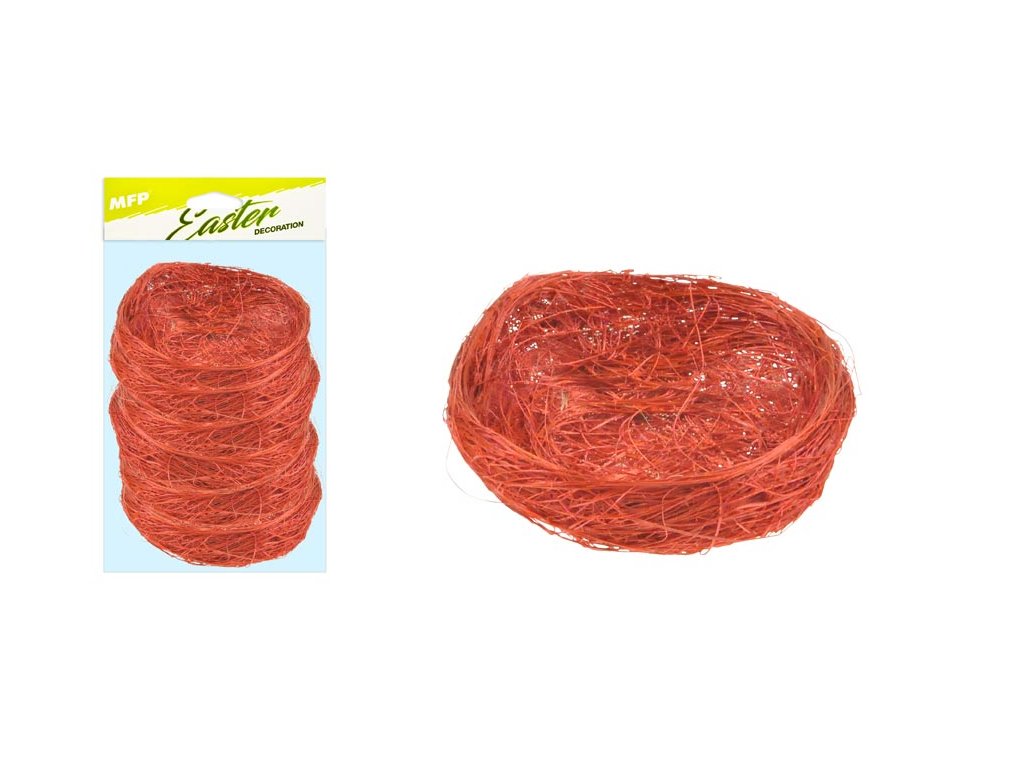 Dekoračné hnedé hniezdo vyrobené zo sisalu POUŽITIE: Tento sisal je vhodný na dekorovanie košíkov a na aranžovanie veľkonočnej výzdoby Veľkosť hniezda : 7 cm Počet ks v balení: 6 ks Uvedená cena je za 1 balenie po 6 ks. Dodávame vo vreckovom balení.Dodatočné parametre