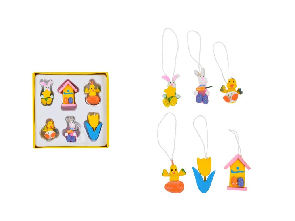 Drevené veľkonočné dekorácie. Vyzdobte si svoj byt veľkonočnými dekoráciami a privítajte tak sviatky jari. Tieto drevené dekorácie môžete použiť na dekorovanie veľkonočných vencov, košíčkov, vetvičiek a pod. Dekorácie majú povrázok na zavesenie. BALENIE OSBAHUJE: - 6 ks veľkonočných farebných dekorácií Veľkosť: 30 mm Dodávame v papierovej krabičke. Uvedená cena je za 1 balenie.Dodatočné parametre