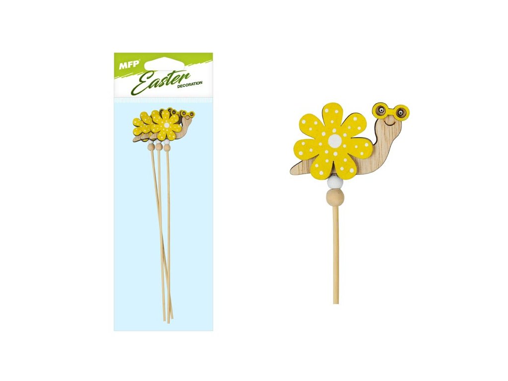 Krásna veľkonočná dekorácia dreveného kvetu s farebným slimákom. Farebný slimák je ideálnym doplnkom do vašich jarných škatúľ. Balenie obsahuje: - 3 ks Veľkosť: 28 cm Uvedená cena je za 1 balenie.Dodatočné parametre