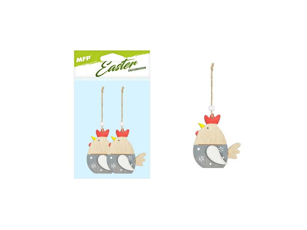 Krásna veľkonočná dekorácia v dizajne drevenej šedej sliepočky so závesom, poslúži ako dekorácia do exteriéru alebo na skrášlenie interiéru. Dekorácia má povrázok na zavesenie. Balenie obsahuje: - 2 ks dekorácií (sliepočky) Veľkosť: 90 mm Uvedená cena je za 1 ks.Dodatočné parametre
