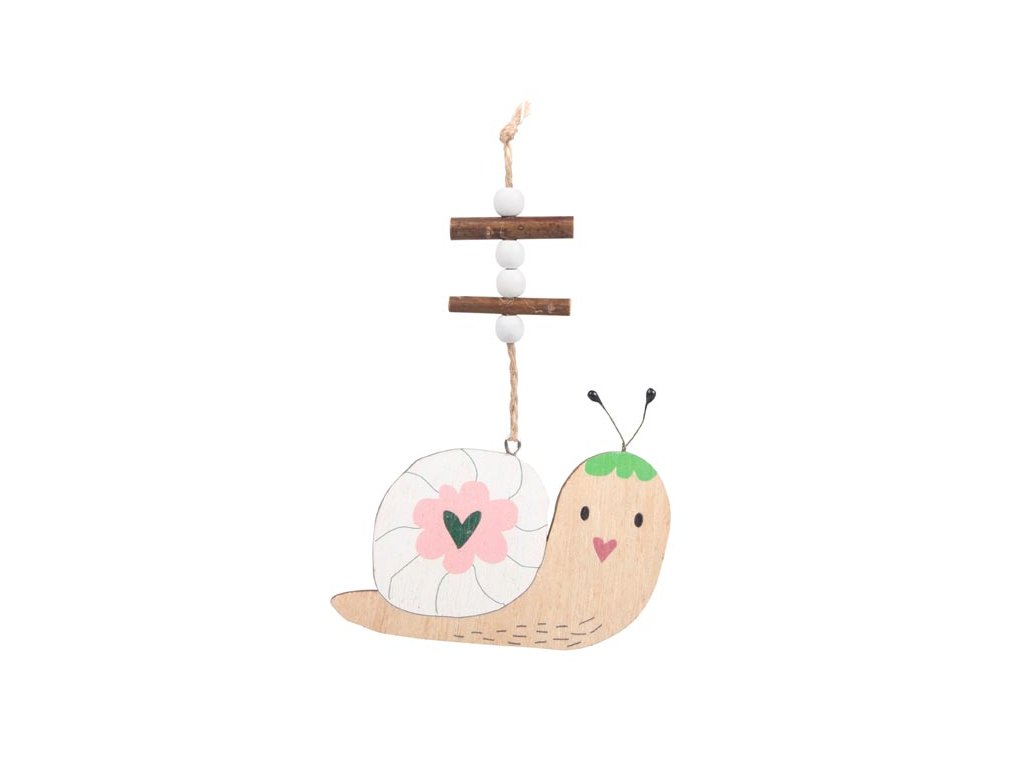 Krásna veľkonočná dekorácia v dizajne dreveného slimáka s otvorenými očami a srdiečkom na ulite. Slimák má na hlave tvarovateľné tykadlá. Dekorácia má jutovú šnúrku na jednoduché zavesenie, ktorá je zdobená korálkami a drevom. Poslúži ako dekorácia do exteriéru alebo interiéru. Materiál: drevo Veľkosť: 10 cm Farba: prírodná/biela Uvedená cena je za 1 ks.Dodatočné parametre