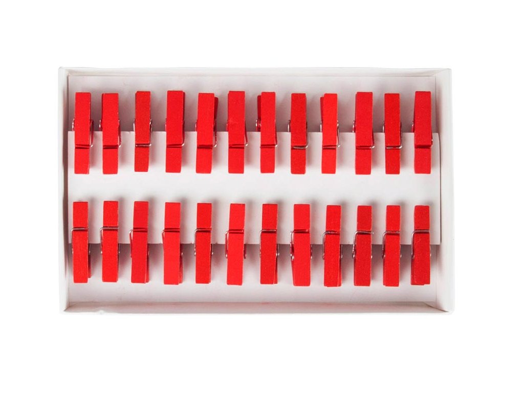 Červené drevené štipce so šnúrkou. Vhodné na kreatívne tvorenie, na pripnutie fotografie alebo dokumentu. Kolíky možno použiť na vytvorenie originálneho adventného kalendára. Záleží na vašej fantázii, ako ich použijete. BALENIE OBSAHUJE: - 24 ks štipcov - šnúrku Farba: červená Materiál: drevo Veľkosť: 35 mm Dodávame v papierovej škatuľke. Uvedená cena je za 1 balenie.Dodatočné parametre