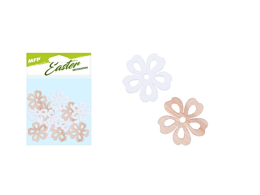 Veľkonočná drevená dekorácia – kvetina v bielej a prírodnej farbe. Plánujete si spríjemniť popoludnie a vyzdobiť si dom alebo záhradu na privítanie jari? Potom by vám nemali chýbať tieto krásne dekorácie v podobe kvetín. Dekoráciu môžete použiť na aranžovanie veľkonočných vencov alebo vetvičiek. Vyrobené z preglejky. OBSAH BALENIA: - 12 ks kvetín Veľkosť: 30 mm Farba: biela, prírodná Balené v sáčku so závesom. Uvedená cena je za 1 balenie.Dodatočné parametre