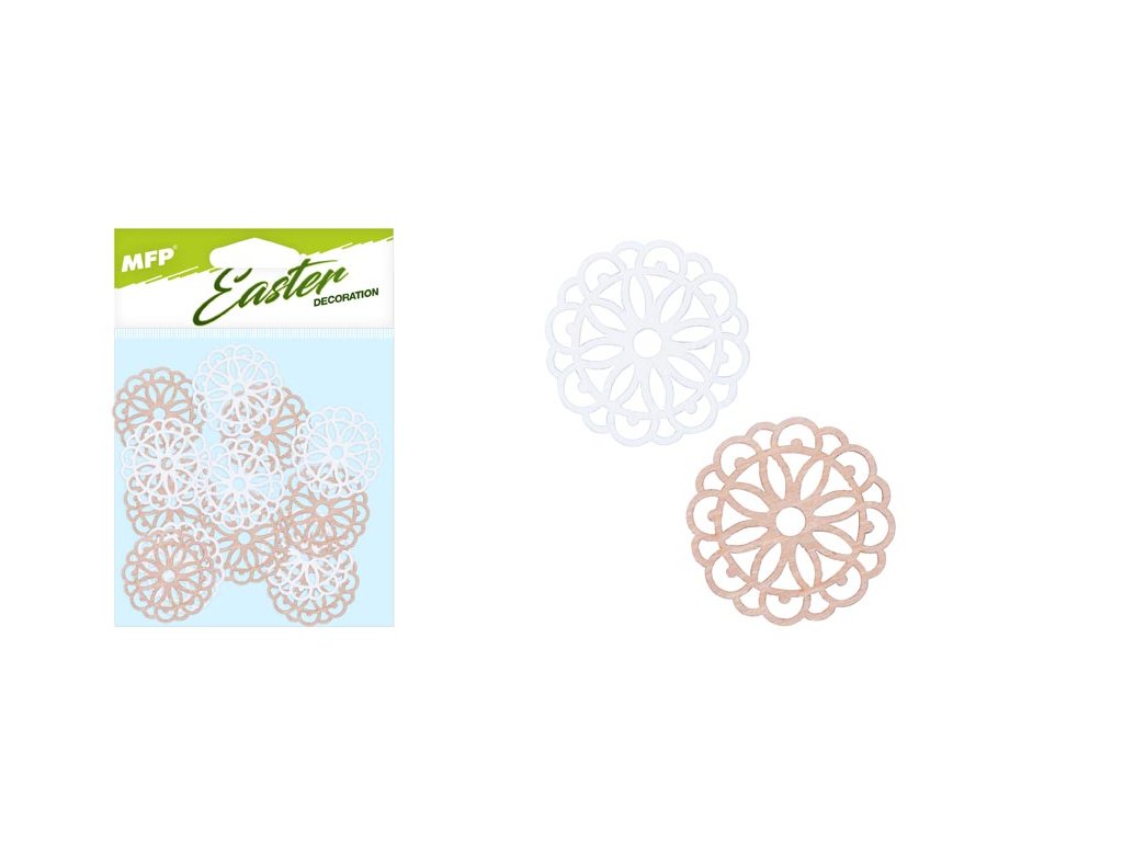 Veľkonočná drevená dekorácia – mandala v prírodnej farbe. Plánujete si spríjemniť popoludnie a vyzdobiť si dom alebo záhradu na privítanie jari? Potom by vám nemali chýbať tieto krásne dekorácie v podobe mandál. Dekoráciu môžete použiť na aranžovanie veľkonočných vencov alebo vetvičiek. Vyrobené z preglejky. OBSAH BALENIA: - 12 ks mandál Veľkosť: 35 mm Farba: prírodná Balené v sáčku so závesom. Uvedená cena je za 1 balenie.Dodatočné parametre