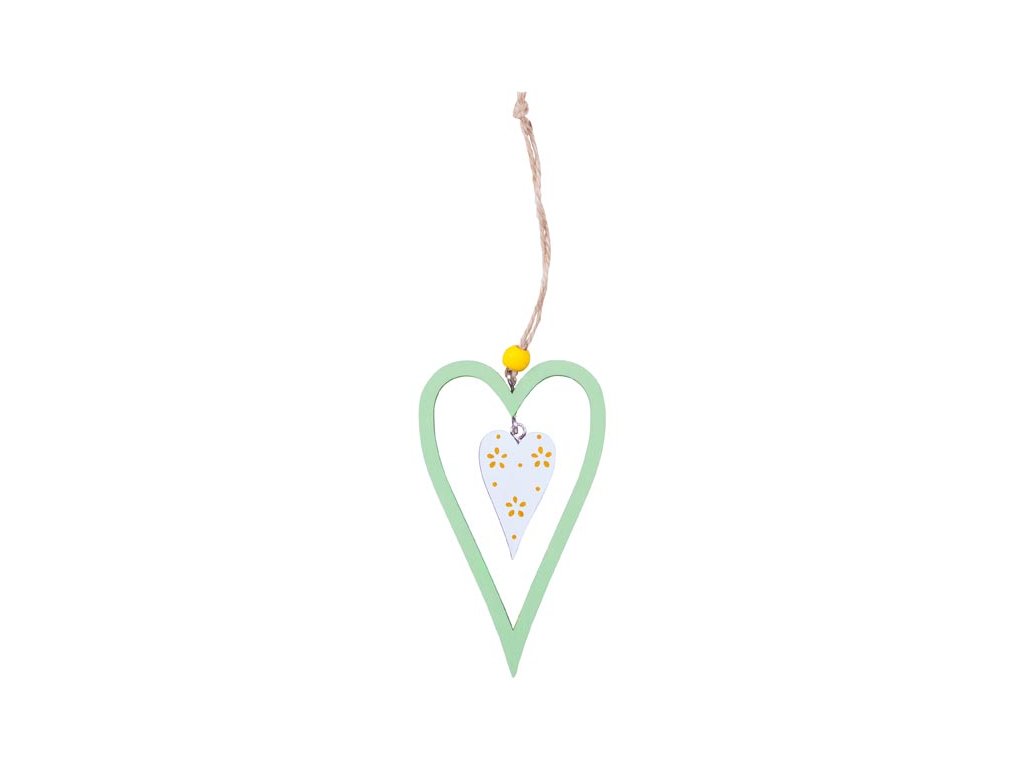Krásna veľkonočná dekorácia v dizajne dreveného zeleného a bieleho srdca so závesom. Poslúži ako exteriérová dekorácia alebo na skrášlenie interiéru. Dekorácia má šnúrku s korálkou na zavesenie. Veľkosť: 120 mm Uvedená cena je za 1 ks.Dodatočné parametre