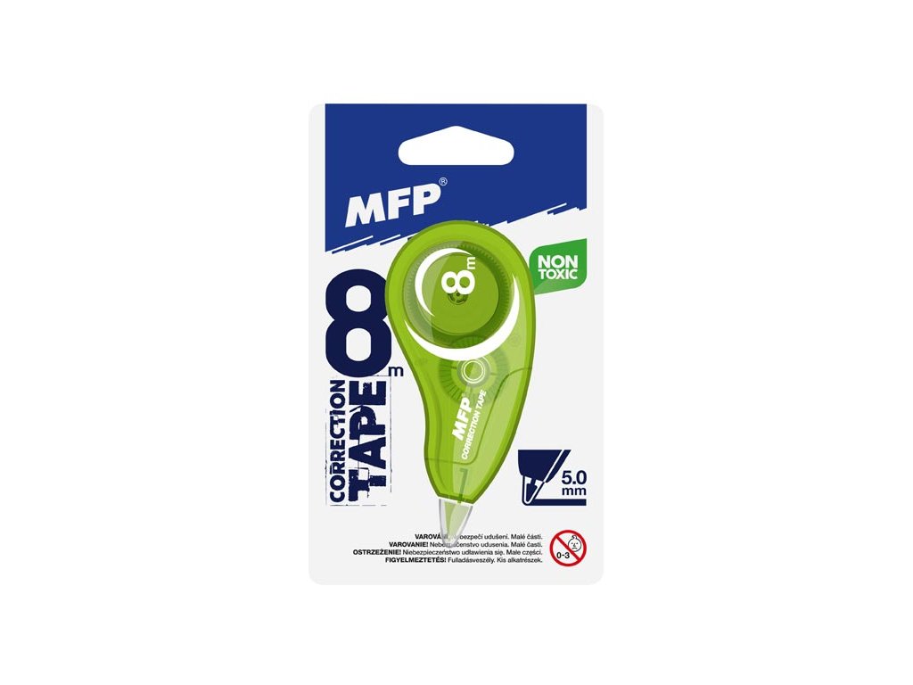 Korekčná páska šíře 5 mm, návin 8 m. Chcete skryť na papieri niečo, čo ste nechceli napísať? Stačí vám nato korekčná páska! - netoxická - rýchla a čistá aplikácia - bezprostredná možnosť prepísania - šetrná k životnému prostrediu - bez zápachu NÁVOD: 1. Umiestnite hrot na miesto, ktoré chcete opraviť a ťahom ho zabieľte. 2. Oprava bude efektívnejšia, ak dokument podložíte papierom alebo hladkou podložkou. 3. Neskladujte pásku pri vysokej teplote a na vlhkom mieste. Chráňte pred slnkom. Dodávame v modrej, oranžovej a zelenej farbe. Balené v plastovom puzdra so závesom. Uvedená cena je za 1 ks.Dodatočné parametre