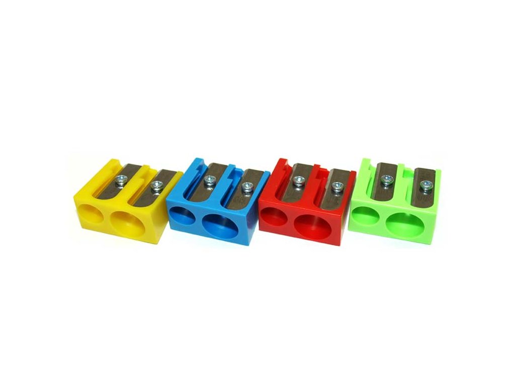 Plastové, školské strúhadlo bez odpadovej nádobky s dvoma otvormi. Je nevyhnutnou súčasťou školského peračníka. Ostria sú pripevnené skrutkou, môžu sa odmontovať a nabrúsiť. Dodávame v 4 farbách. Farba: žltá, modrá, červená, zelená Uvedená cena je za 1 ks.Dodatočné parametre