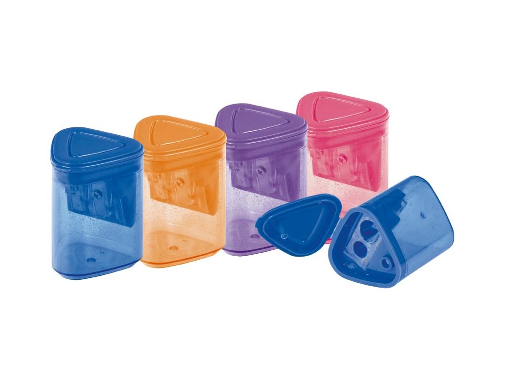 Plastové, školské strúhadlo so zásobníkom na odpad. Strúhadlo patrí do nevyhnutnej výbavy každého školáka! Strúhadlo má 2 otvory. Čepele sú pripevnené skrutkou, takže ide to aj demontovať a nabrúsiť. Strúhadla sú balené po 48 ks v papierovej krabičke. Dodávame v rôznych farbách (fialová, červená, modrá, oranžová). Rozmer: 32 x 30 x 45 mm Uvedená cena je za 1 ks.Dodatočné parametre