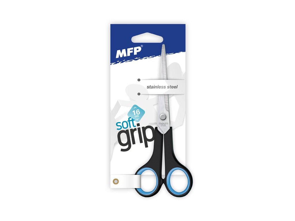 Nožnice vhodné do školy, do kancelárie, ale aj pre domácnosť. Ostrie je vyrobené z tvrdenej, nehrdzavejúcej ocele. Rukoväť je ergonomicky tvarovaná a opatrená technológiou SOFT GRIP, ktorá zabraňuje šmýkaniu. Dĺžka ostria od stredu nitu: 85 mm Farebné vyhotovenie: čierno-modré Dodávame so závesom. Uvedená cena je za 1 ks.Dodatočné parametre