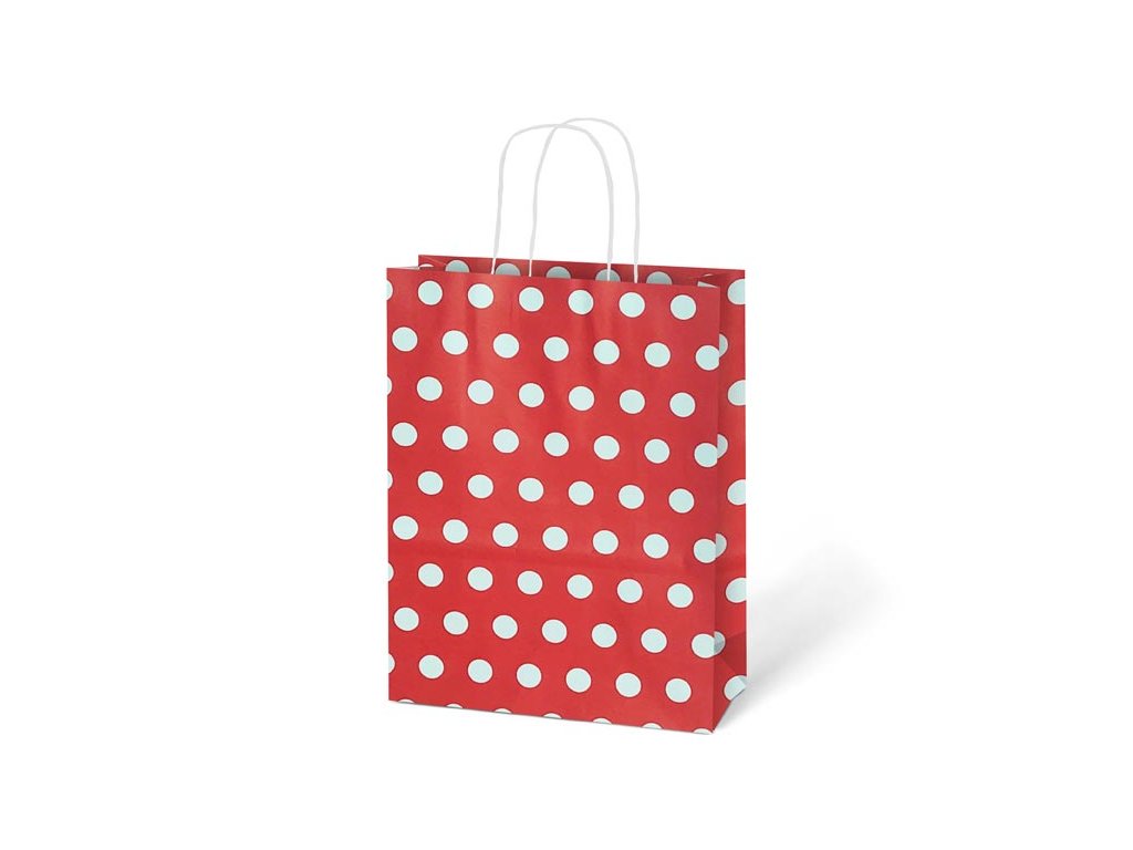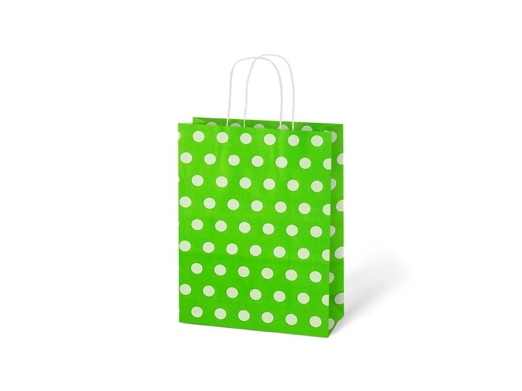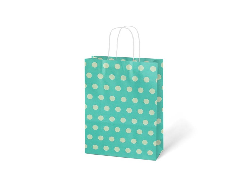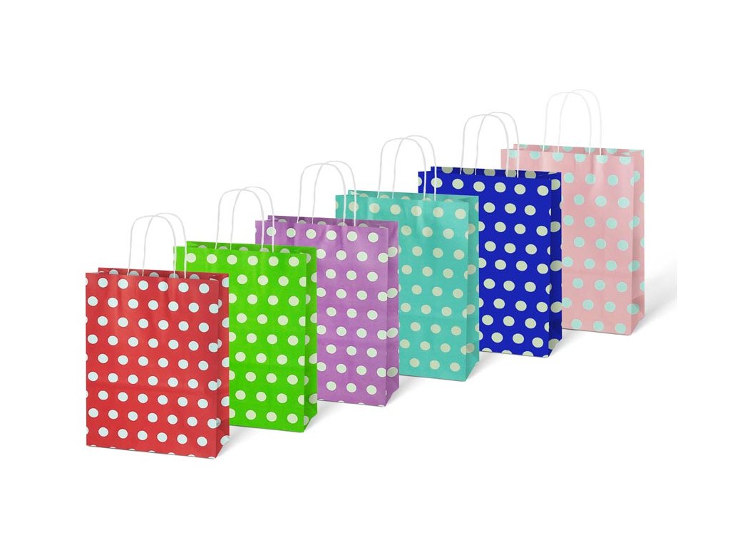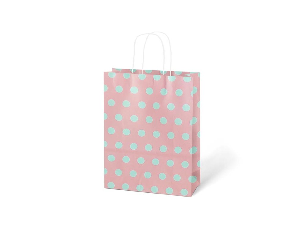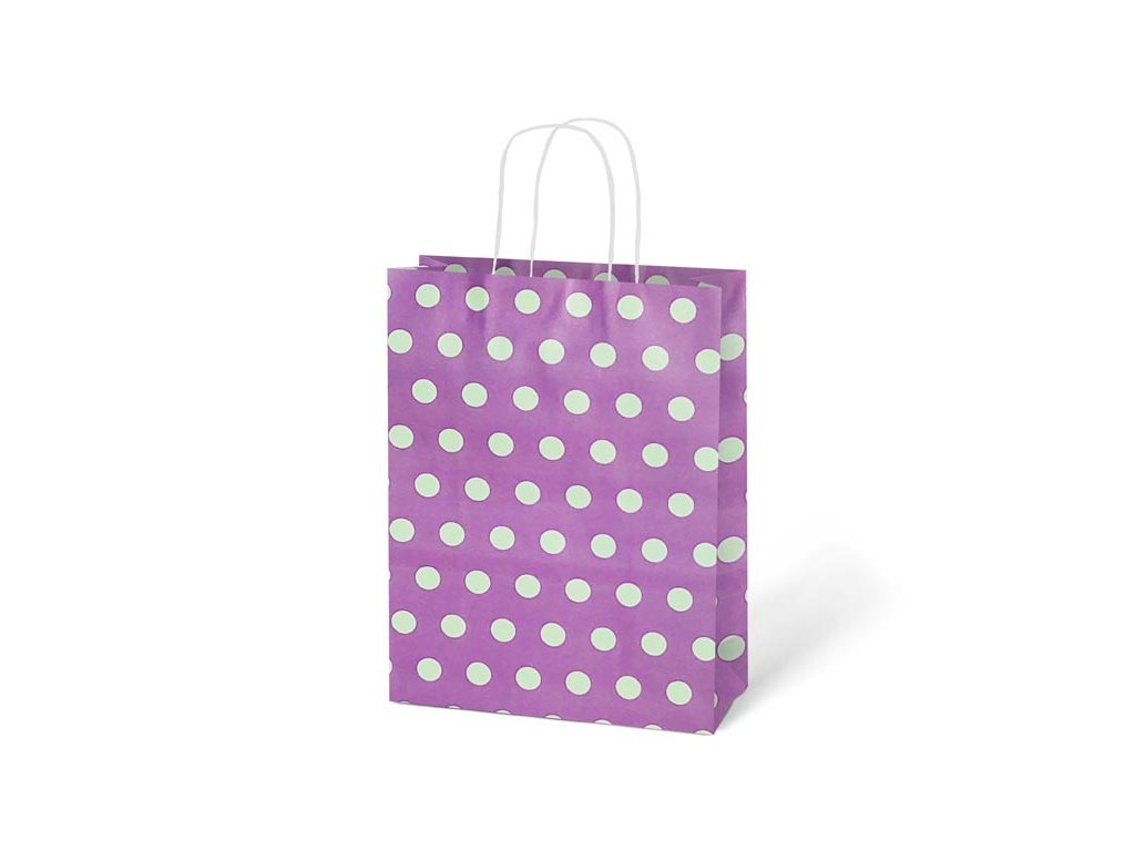 Papierová darčeková taška KRAFT M s potlačou bodiek. Je vyrobená z pevného kraftového papiera, vďaka ktorému je odolná proti pretrhnutiu. Taška má krútené papierové uši. Pokiaľ nemáte čas baliť darček do darčekového baliaceho papiera tak práve pre Vás máme široký výber darčekových tašiek. Motív: bodky Materiál: kraftový papier Rozmer: 210 x 270 x 110 mm Farba: červená, zelená, fialová, tyrkysová, modrá, ružová Dodávame v mixe po 6 ks podľa skladovej zásoby. Uvedená cena je za 1 ks.Dodatočné parametre