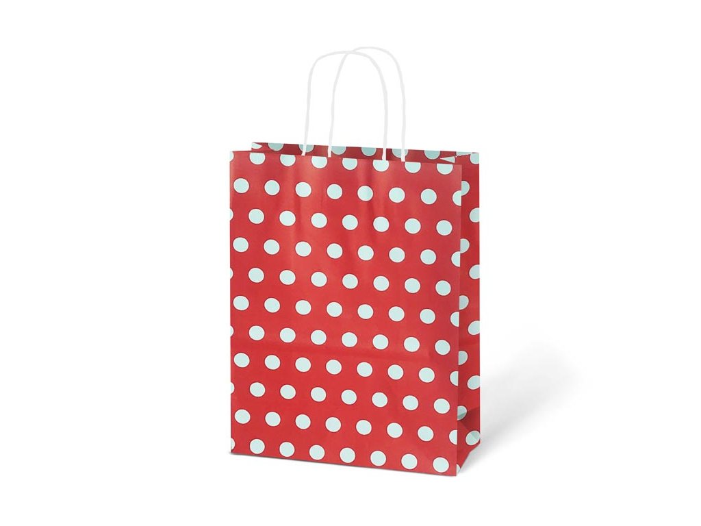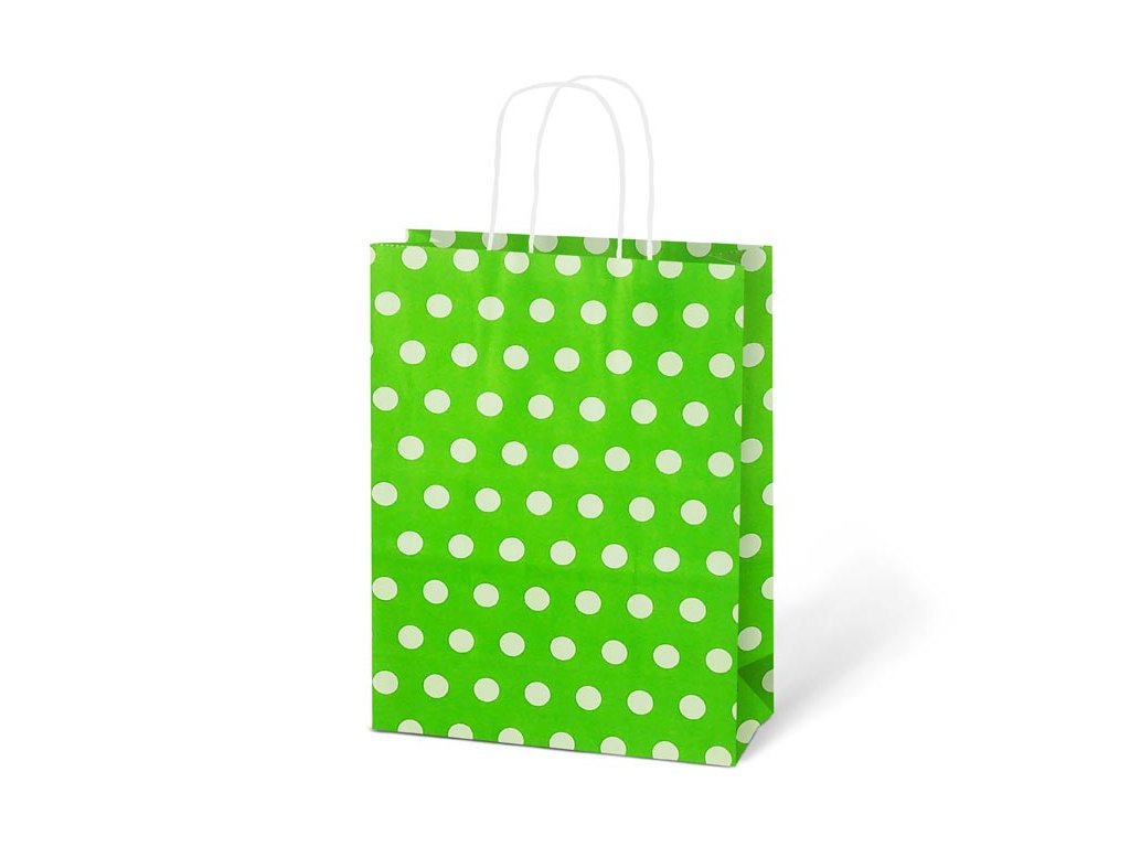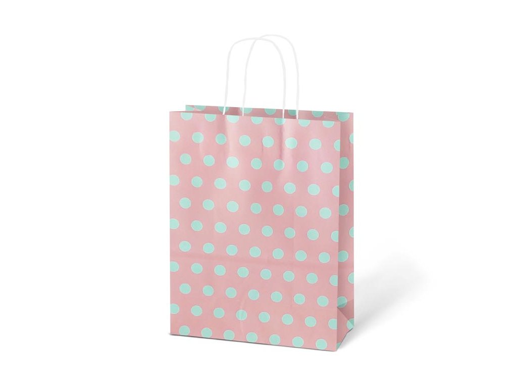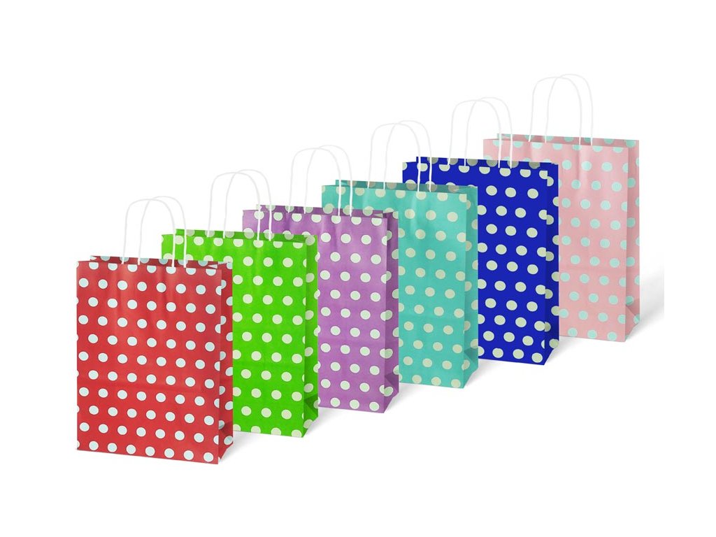 Papierová darčeková taška KRAFT M s potlačou bodiek. Je vyrobená z pevného kraftového papiera, vďaka ktorému je odolná proti pretrhnutiu. Taška má krútené papierové uši. Pokiaľ nemáte čas baliť darček do darčekového baliaceho papiera tak práve pre Vás máme široký výber darčekových tašiek. Motív: bodky Materiál: kraftový papier Rozmery: 245 x 310 x 105 mm Farba: červená, zelená, fialová, tyrkysová, modrá, ružová Dodávame v mixe po 6 ks podľa skladovej zásoby. Uvedená cena je za 1 ks.Dodatočné parametre