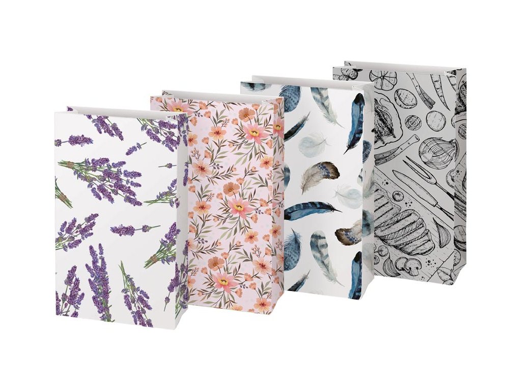 Darčekové papierové vrecúško KRAFT. Vrecúška sú vyrobené z pevného kraftového papiera. Sú ideálne na zabalenie malého darčeka, sladkostí, orieškov alebo sušeného ovocia. Na uzavretie vrecúšok môžete použiť dekoratívny kolíček, samolepiacu menovku alebo stuhu a vytvoriť tak jedinečný darček. Balenie: 12 ks Gramáž: 120 g Materiál: kraftový papier Rozmer: 100 x 180 x 60 mm Motív: levanduľa, kvety, pierka, zelenina Dodávame v mixe 4 ks podľa skladovej zásoby. Uvedená cena je za 1 ks.Dodatočné parametre