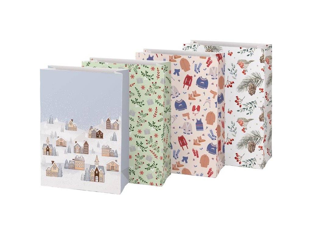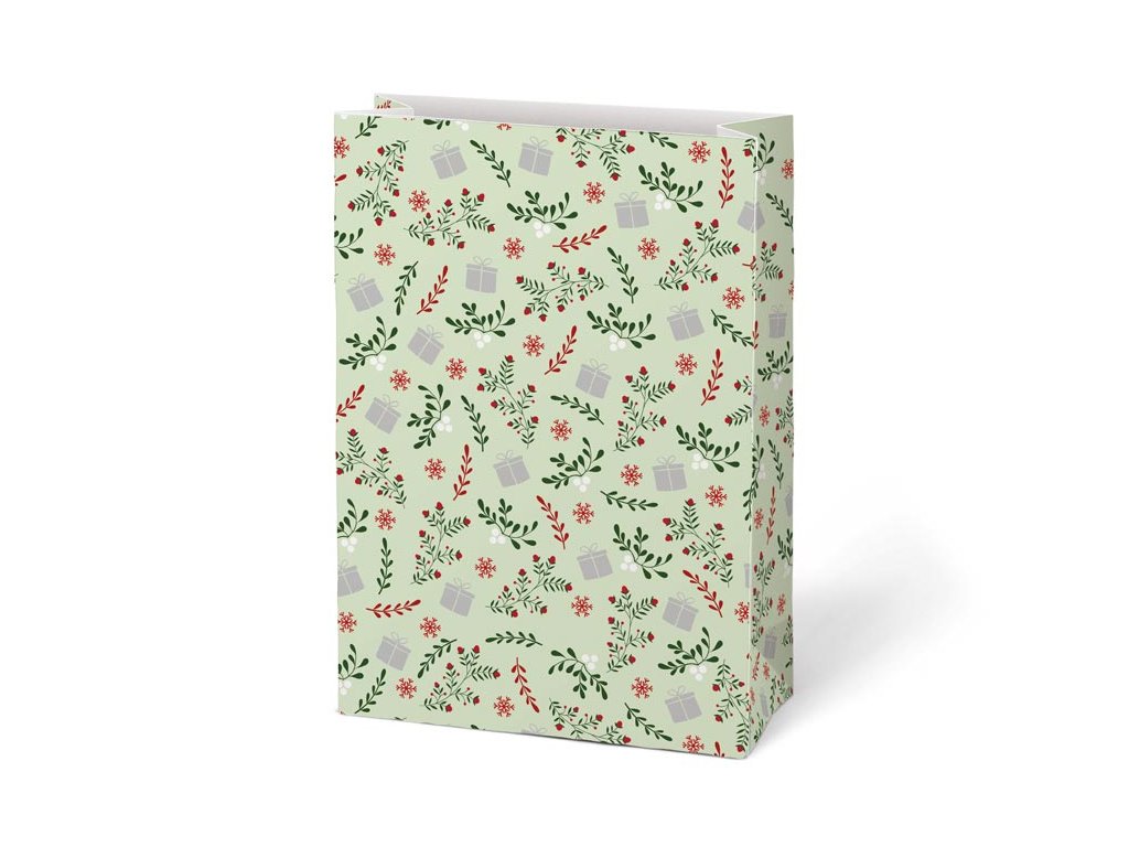 Vianočné darčekové papierové vrecúško KRAFT. Vrecúška sú vyrobené z pevného kraftového papiera. Sú ideálne na balenie vianočných cukroviniek, perníkov alebo sušeného ovocia. Na uzavretie vrecúšok môžete použiť ozdobný špendlík, samolepiacu menovku alebo stuhu a vytvoriť tak jedinečný darček. Balenie: 12 ks Hmotnosť: 120 g Materiál: kraftový papier Rozmery: 260 x 360 x 120 mm Motív: zmes vianočných motívov Dodávame v mixe 4 ks podľa skladových zásob. Uvedená cena je za 1 ks.Dodatočné parametre