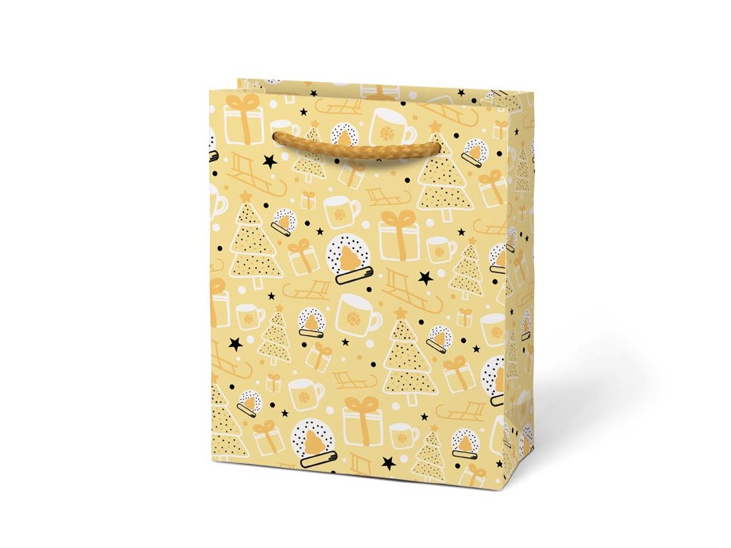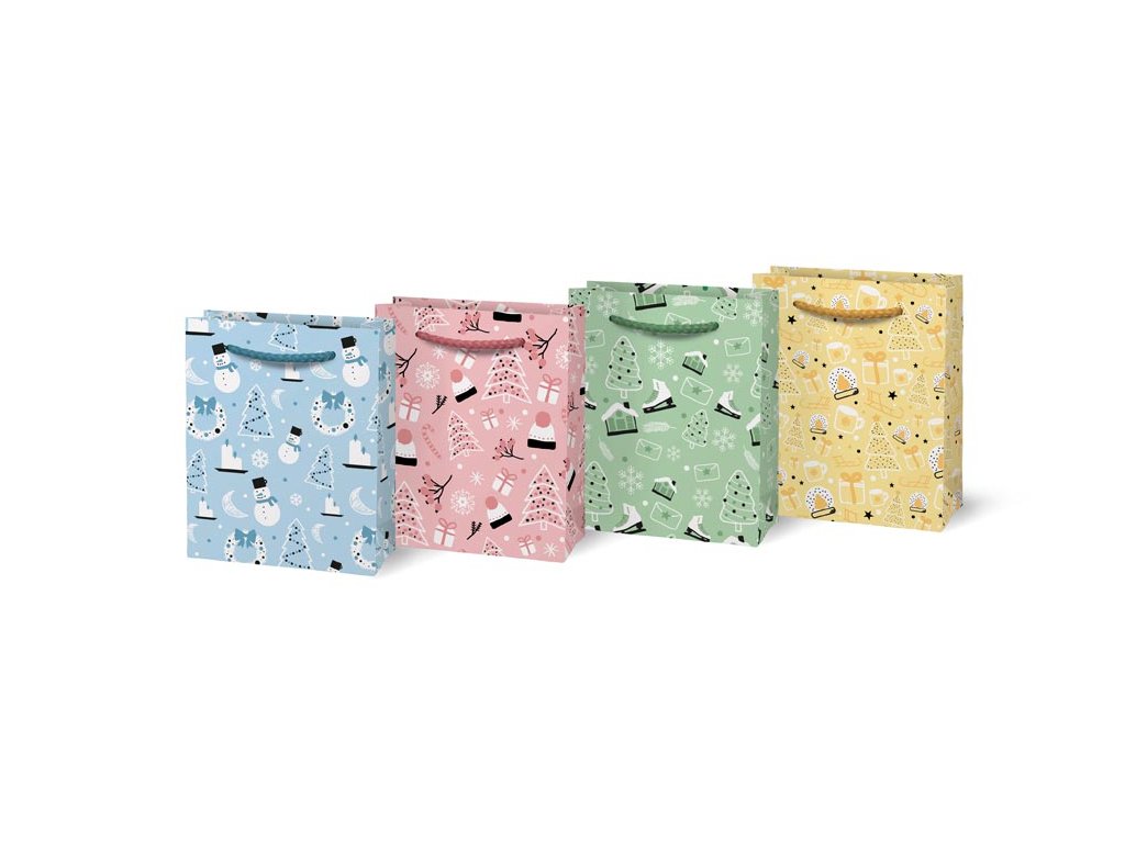Vianočná, darčeková, papierová taška, je ideálna na odovzdanie darčekov a veľkým pomocníkom, keď je ťažké darček zabaliť do darčekového baliaceho papiera. Taška je opatrená pevným uchom. Rozmer: 110 x 135 x 65 mm Motív: mix vianočných motívov Farba: modrá, ružová, zelená, žltá Dodávame v mixe 4 ks podľa skladových zásob. Uvedená cena je za 1 ks.Dodatočné parametre