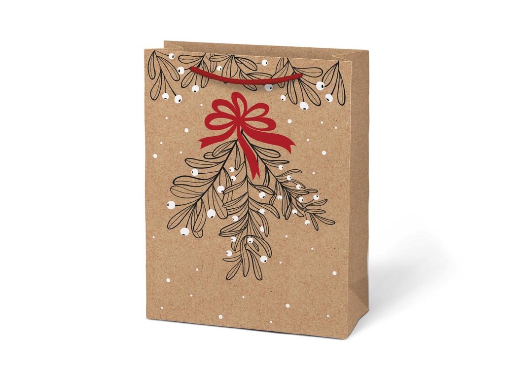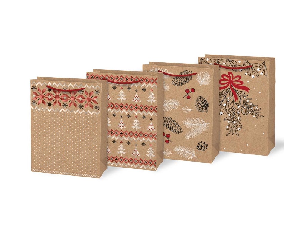 Vianočná darčeková taška M LUX z pevného kraftového papiera v mixe vianočných motívov. Je ideálny na odovzdanie darčekov, ktoré je ťažké zabaliť do darčekového baliaceho papiera. Taška má pletené textilné uši. Farba:hnedá/prírpdná Materiál: kraftový papier Motív: mix vianočných motívov Rozmer: 190 x 250 x 90 mm Dodávame v mixe po 4 ks podľa skladovej zásoby. Uvedená cena je za 1 ks.Dodatočné parametre