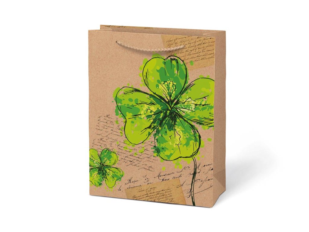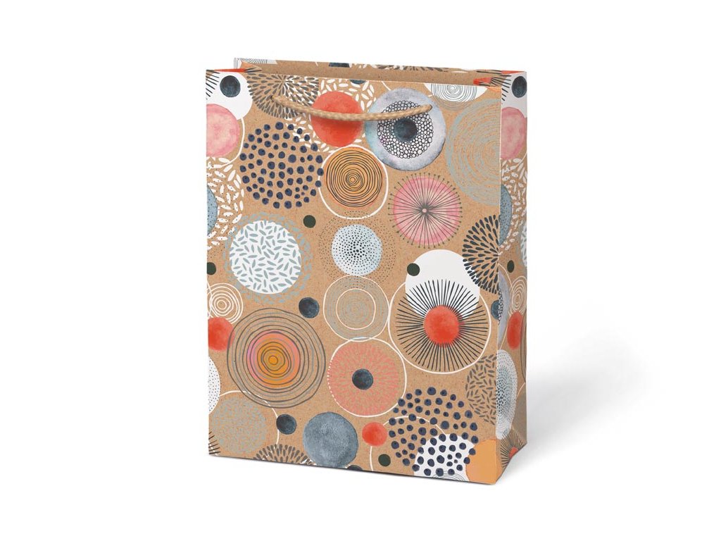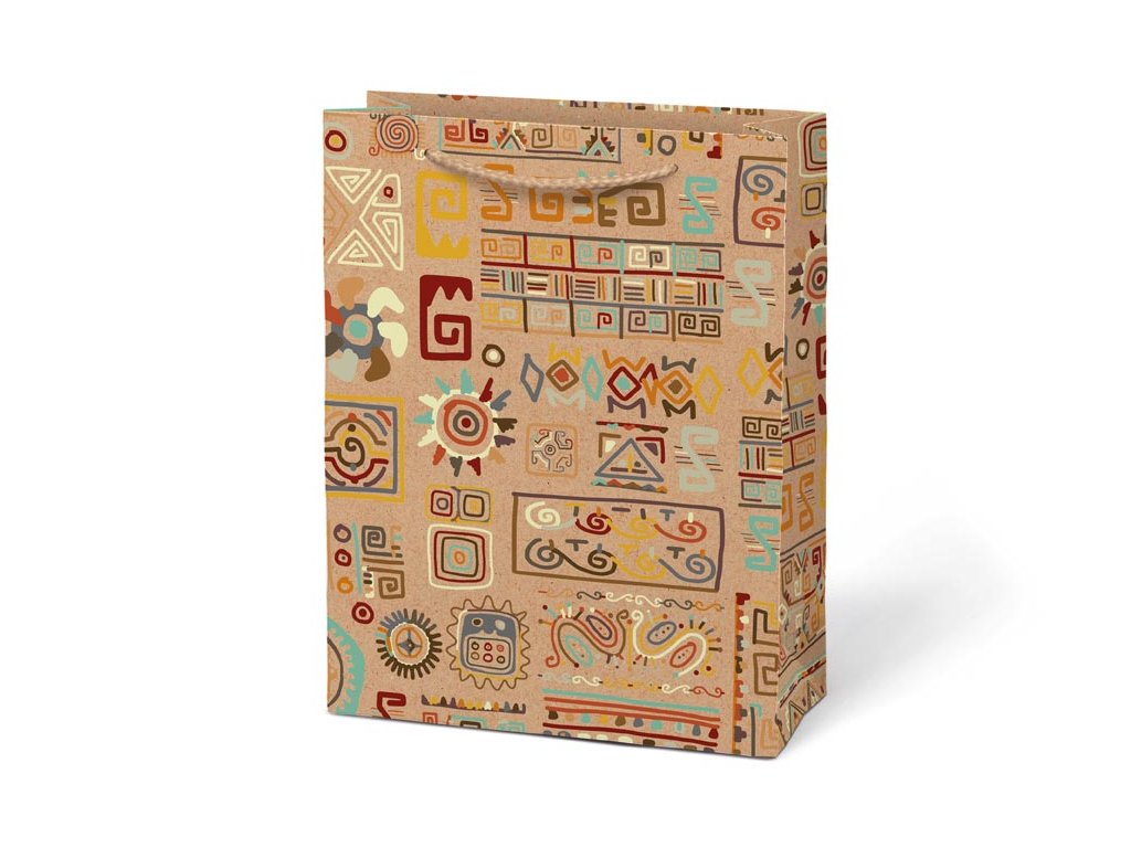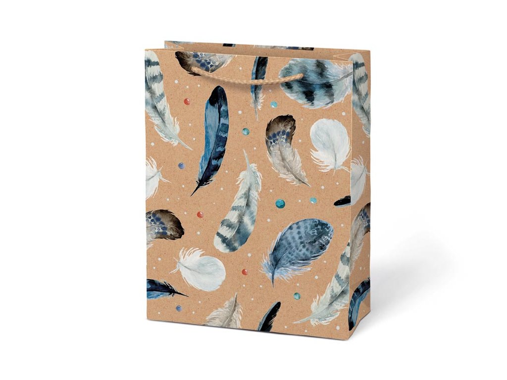 Papierová darčeková taška M KRAFT z pevného kraftového papiera s farebnou potlačou. Taška má pletené textilné uši a kartičku kam môžete napísať meno alebo krátke venovanie. Pokiaľ nemáte čas baliť darček do darčekového baliaceho papiera tak práve pre Vás máme široký výber darčekových tašiek. MOTIV: - pierka - kolieska - štvorlístok - ornamenty Farba: hnedá/prírodná Materiál: kraftový papier Rozmer: 190 x 250 x 90 mm Dodávame v mixe po 4 ks podľa skladovej zásoby. Uvedená cena je za 1 ks.Dodatočné parametre