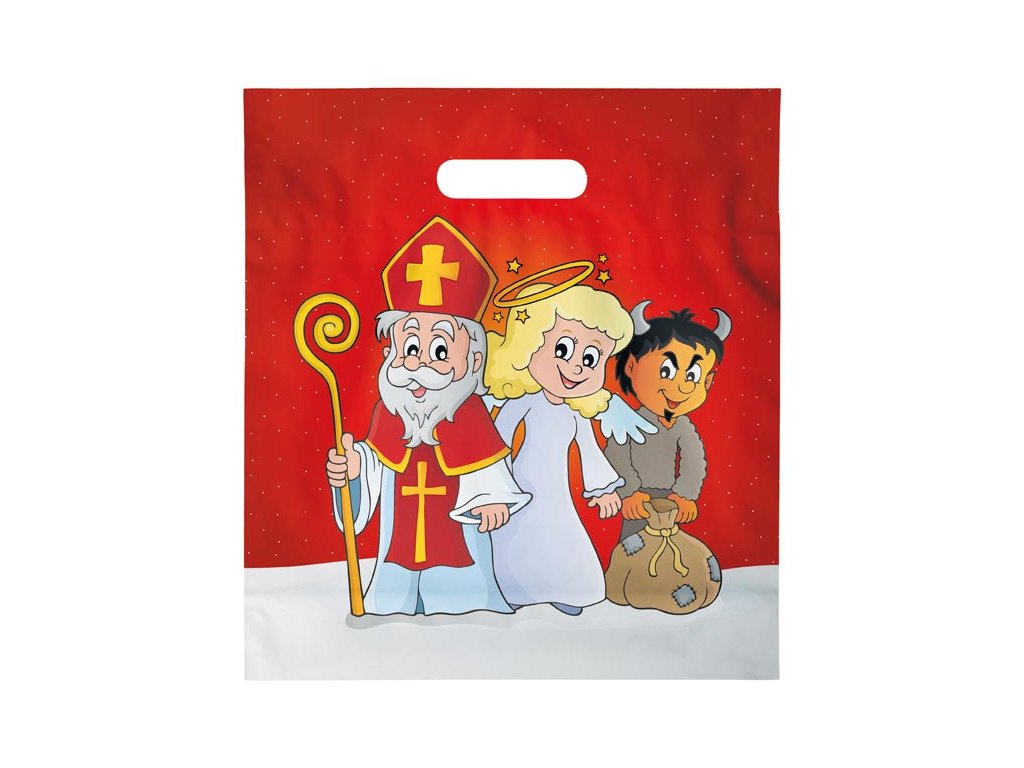 Taška s motívom Mikuláša vyrobená z PVC s prehmatom, ktorá je ideálna na zabalenie dobrôt, sladkostí a na ďalšiu mikulášsku nádielku pre deti. Materiál: PVC Rozmer: 290 x 320 x 80 mm Uvedená cena je za 1 ks.Dodatočné parametre