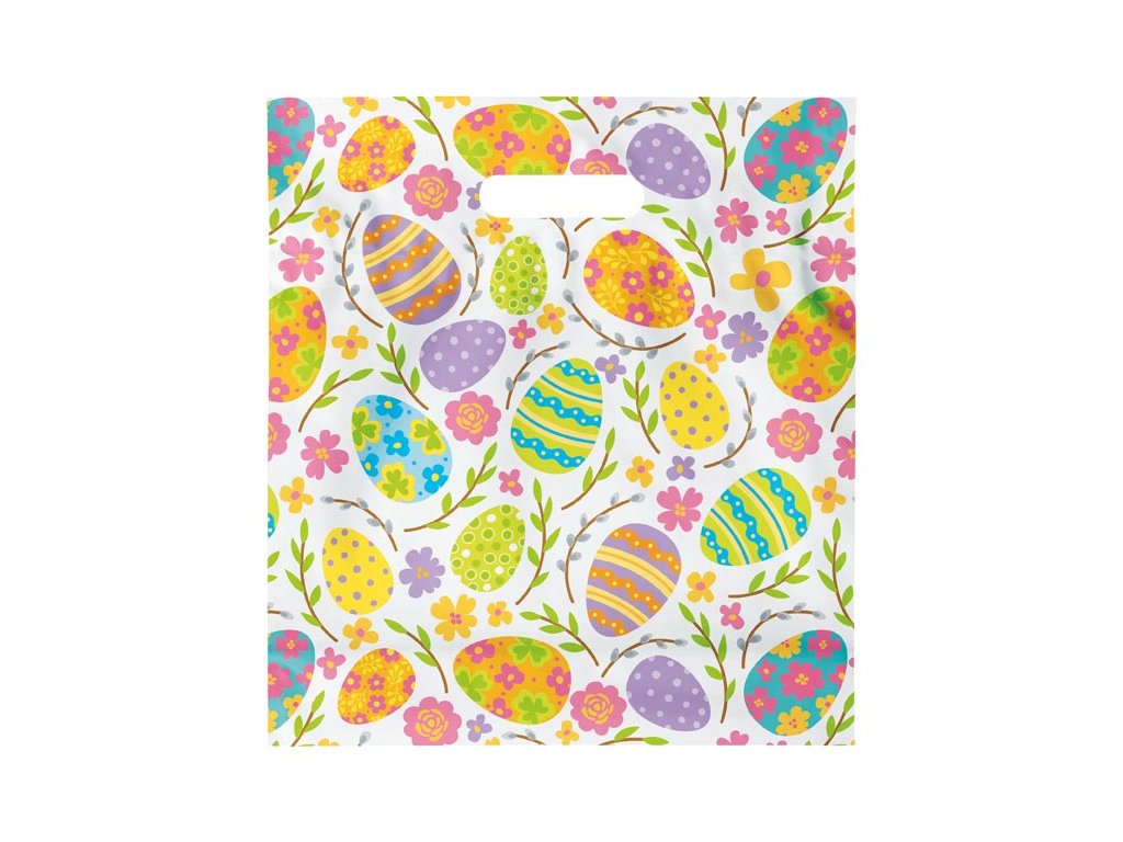 Veľkonočná taška na výslužku s motívom farebných vajíčok. Motív: vajíčka Rozmer: 290 x 320 x 80 mm Uvedená cena je za 1 ks.Dodatočné parametre