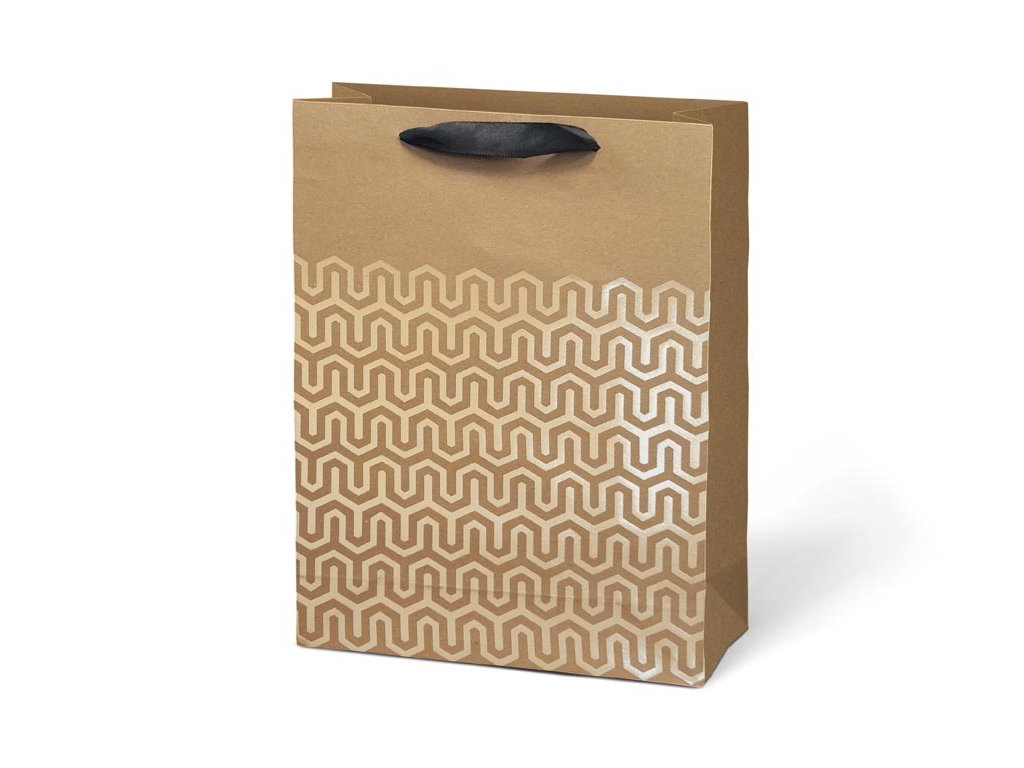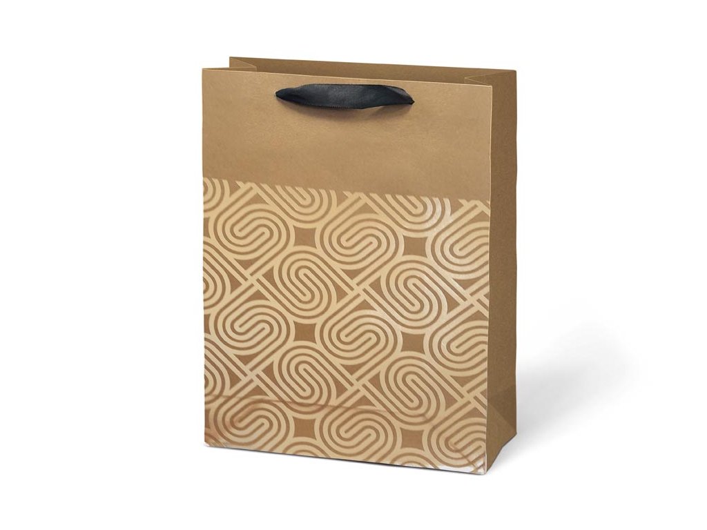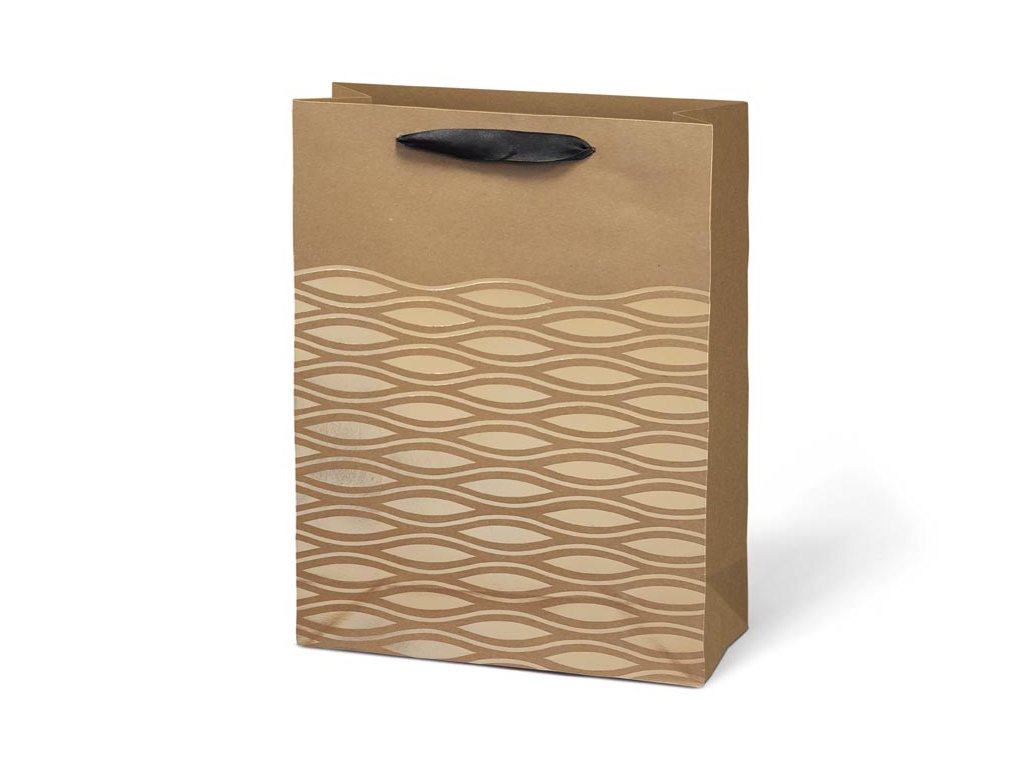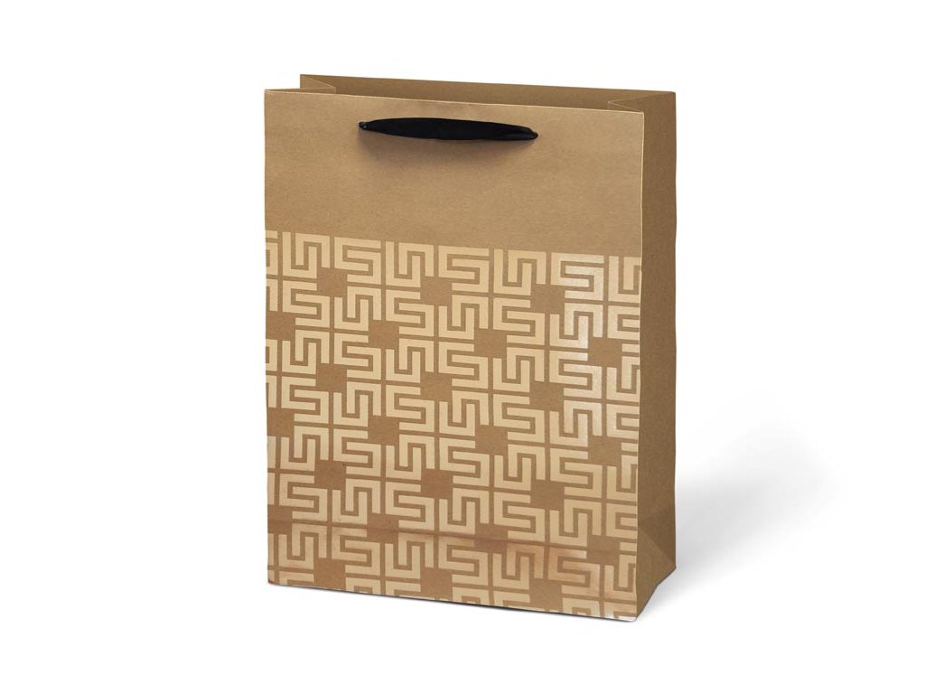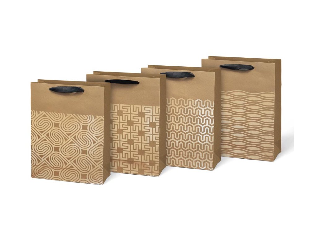 Darčeková taška L KRAFT z pevného kraftového papiera s uchami z čiernej stuhy v mixe zlatých motívov. Krásny design zaručí spokojnosť obdarovaného. Pokiaľ nemáte čas baliť darček do darčekového baliaceho papiera tak práve pre Vás máme široký výber darčekových tašiek. Farba: hnedá/prírodná Materiál: kraftový papier Motív: mix zlatých motívov Rozmer: 225 x 335 x 100 mm Dodávame v mixe po 4 ks podľa skladovej zásoby. Uvedená cena je za 1 ks.Dodatočné parametre