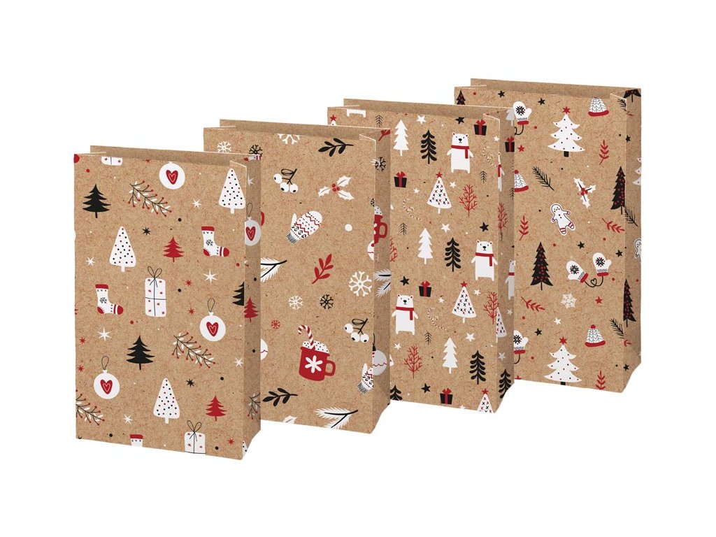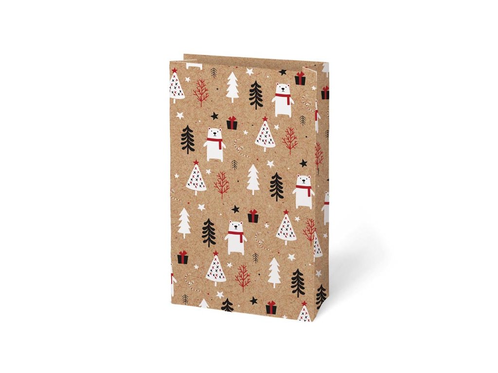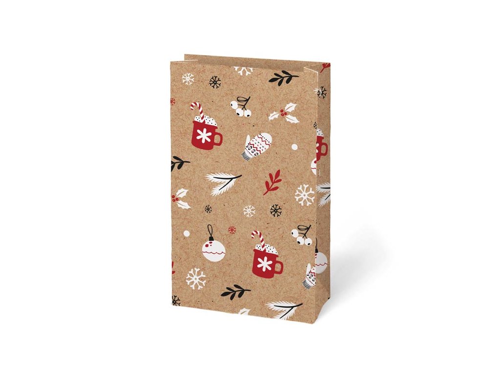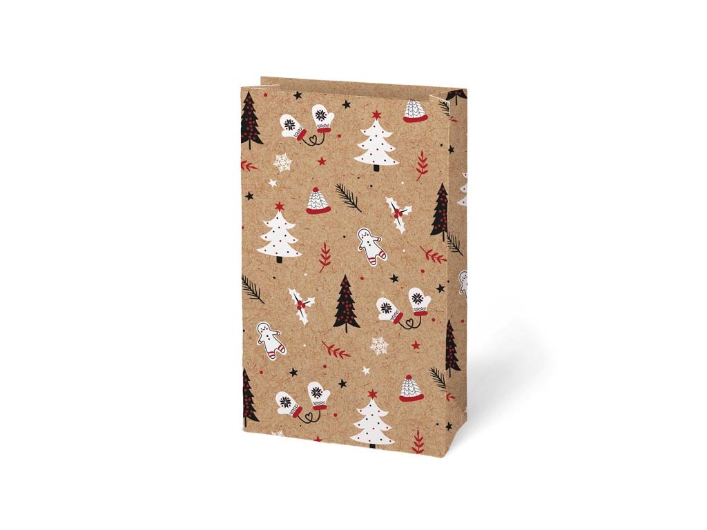 Vianočné darčekové papierové vrecúško KRAFT. Vrecúška sú vyrobené z pevného kraftového papiera. Sú ideálne na balenie vianočných cukroviniek, perníkov alebo sušeného ovocia. Na uzavretie vrecúšok môžete použiť ozdobný špendlík, samolepiacu menovku alebo stuhu a vytvoriť tak jedinečný darček. Balenie: 12 ks Hmotnosť: 120 g Farba: prírodná hnedá Rozmer: 100 x 180 x 60 mm Motív: zmes vianočných motívov Dodávame v mixe 4 ks podľa skladových zásob. Uvedená cena je za 1 ks.Dodatočné parametre