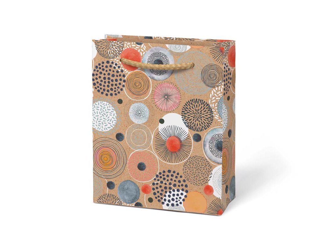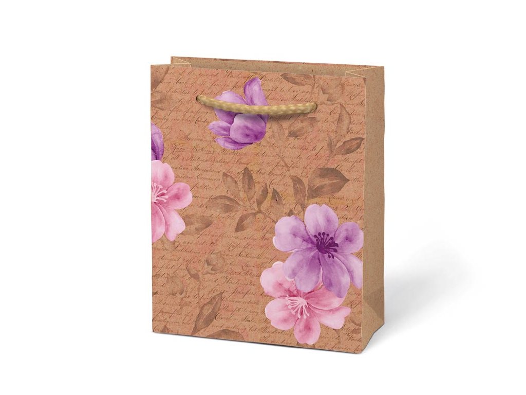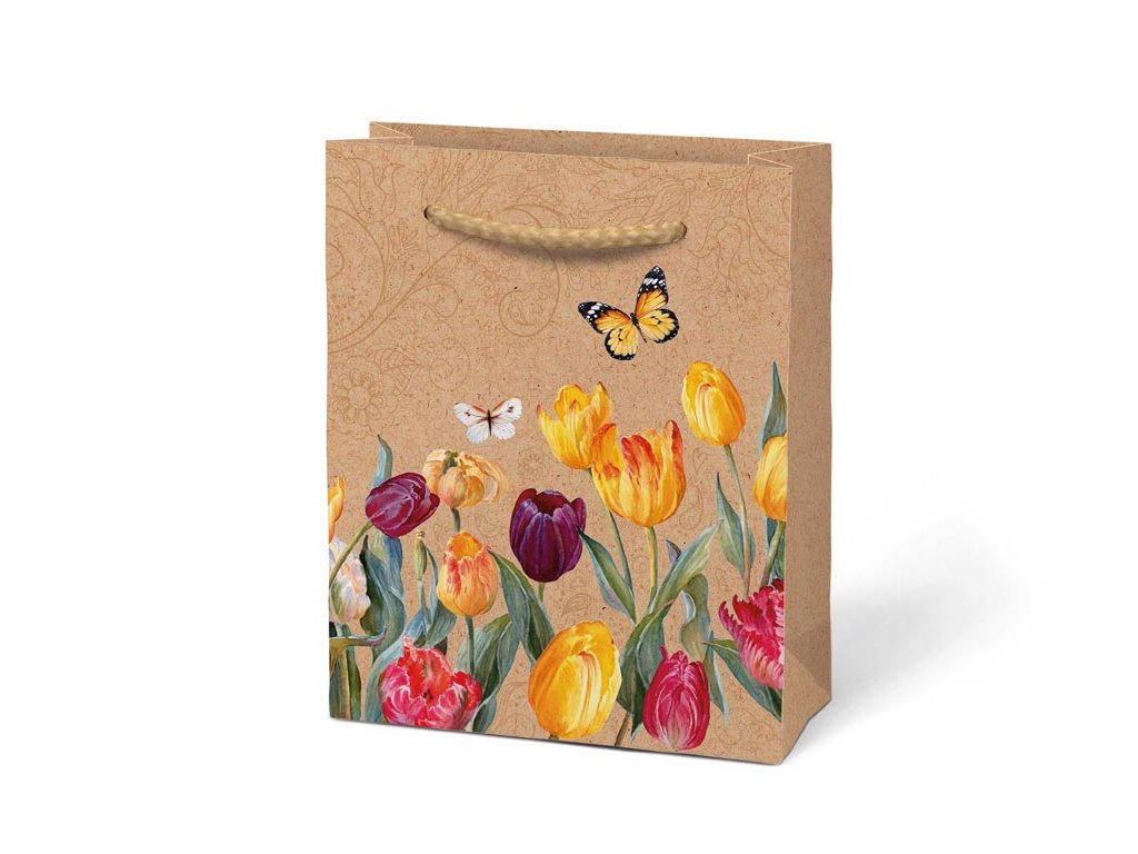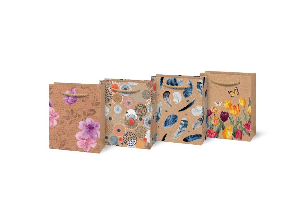 Darčeková taška S LUX KRAFT z kraftového papiera s potlačou. Taška má pletené textilné uši pre ľahké nosenie a kartičku kam môžete napísať meno alebo krátke venovanie. Pokiaľ nemáte čas baliť darček do darčekového baliaceho papiera tak práve pre Vás máme široký výber darčekových tašiek. MOTIV: - kvety - kolieska - pierka - tulipány Farba: hnedá/prírodná Materiál: kraftový papier Rozmer: 110 x 135 x 65 mm Dodávame v mixe po 4 ks podľa skladovej zásoby. Uvedená cena je za 1 ks.Dodatočné parametre