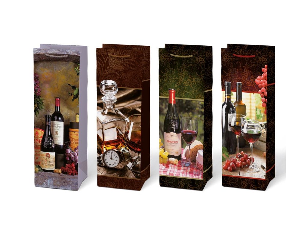 Darčeková, papierová taška T12 na víno alebo iné fľaše. Taška má pevnú rukoväť na jednoduché prenášanie. Ak nemáte čas zabaliť darček do darčekového papiera, máme široký výber darčekových tašiek práve pre vás. MOTÍV: - víno - whisky Rozmery: 120 x 360 x 100 mm Dodávame v mixe 4 ks podľa skladových zásob. Uvedená cena je za 1 ks.Dodatočné parametre