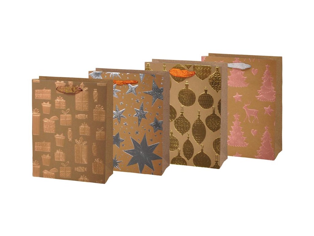 Vianočná papierová darčeková taška M LUX KRAFT s vianočnými motívmi je skvelou voľbou pre každého, kto hľadá štýlový a praktický spôsob balenia darčekov. Je vyrobená z pevného kraftového papiera, ktorý zaručuje nielen vysokú odolnosť, ale aj atraktívny vzhľad. Vrecko je vybavené textilnými držadlami na pohodlné prenášanie a obsahuje kartičku, na ktorú môžete napísať meno obdarovaného alebo krátke prianie. Motív: vianočné motívy Farba: hnedá/prírodná Materiál: kraftový papier Rozmery: 180 x 230 x 100 mm Dodávame v mixe po 4 ks podľa skladovej zásoby. Uvedená cena je za 1 ks.Dodatočné parametre