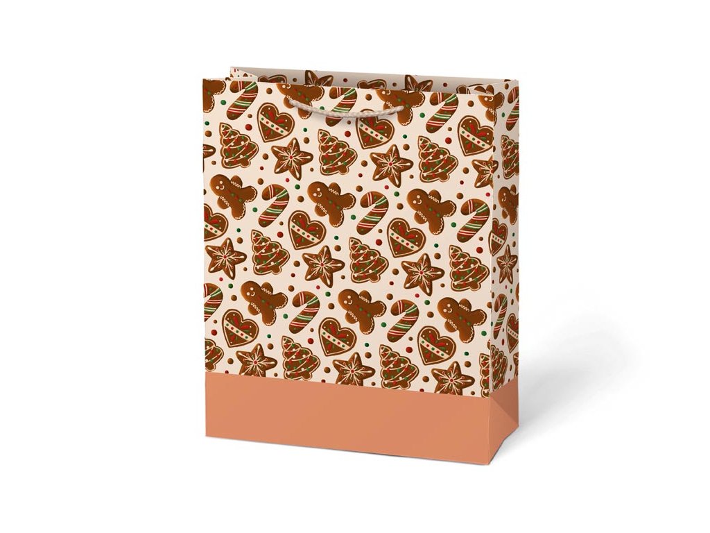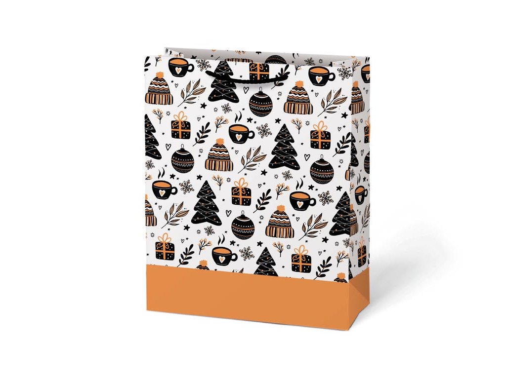 Vianočná darčeková papierová taška T5 s vianočnými motívmi je dokonalým spojením elegancie a praktickosti. Taška je vhodná na balenie všetkých druhov darčekov, od malých prekvapení po väčšie predmety, a pridáva im kúzlo sviatočnej atmosféry. Je skutočne nepostrádateľným pomocníkom, keď sa balenie darčeka do klasického baliaceho papiera zdá byť príliš ťažké. Jej robustné uši zaisťujú pohodlné a bezpečné prenášanie. Rozmer: 260 x 320 x 138 mm Motív: vianočné stromčeky, perníčky, vianočné gule, mix vianočné motívov Dodávame v mixe po 4 ks podľa skladovej zásoby. Uvedená cena je za 1 ks.Dodatočné parametre