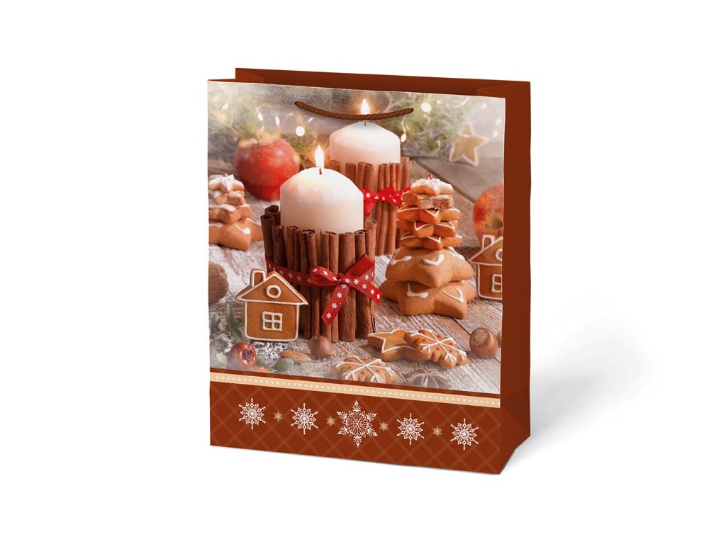 Vianočná darčeková papierová taška T5 s vianočnými motívmi je dokonalým spojením elegancie a praktickosti. Taška je vhodná na balenie všetkých druhov darčekov, od malých prekvapení po väčšie predmety, a pridáva im kúzlo sviatočnej atmosféry. Je skutočne nepostrádateľným pomocníkom, keď sa balenie darčeka do klasického baliaceho papiera zdá byť príliš ťažké. Jej robustné uši zaisťujú pohodlné a bezpečné prenášanie. Motív: mix vianočné motívov Rozmer: 260 x 320 x 138 mm Dodávame v mixe po 4 ks podľa skladovej zásoby. Uvedená cena je za 1 ks.Dodatočné parametre