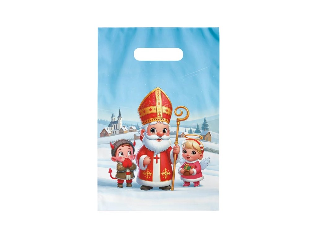 Igelitová taška s prehmatom a farebným mikulášskym motívom. Je ideálny pre rôzne typy darčekov, od malých sladkostí a hračiek až po väčšie predmety. Na taške je obrázok Mikuláša, anjela a čerta. Taška je vybavená prehmatom, čo je otvor v hornej časti tašky, ktorý slúži ako rukoväť. Tento priehmat umožňuje ľahké a pohodlné prenášanie tašky. Vďaka pevnému plastovému materiálu je taška odolná proti roztrhnutiu a vlhkosti, čím zaisťuje, že darčeky vo vnútri zostanú v bezpečí a suchu. Farba: biela Materiál: PE Motív : mikulášsky Rozmer: 200 x 300 x 80 mm Praktické balenie: odtrhávací blok Uvedená cena je za 1 ks.Dodatočné parametre