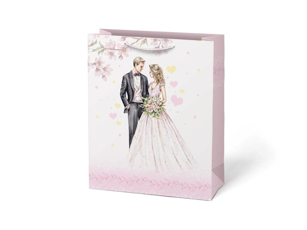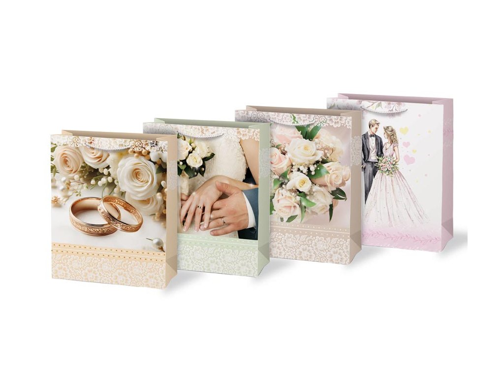 Papierová darčeková taška T4 so svadobným motívom. Predstavujeme vám našu exkluzívnu svadobnú darčekovú tašku, ktorá je určená na elegantnú a štýlovú prezentáciu vašich novomanželských darov. Výberom darčekovej tašky namiesto baliaceho papiera môžete ušetriť čas a zvýšiť estetickú hodnotu daru. Darčeková taška umožňuje rýchle a jednoduché zabalenie darčeka bez potreby zdĺhavého baliaceho papiera. Motív: svadobný Rozmery: 260 x 320 x 138 mm Dodávame v mixe 4 ks podľa skladových zásob. Uvedená cena je za 1 ks.Dodatočné parametre
