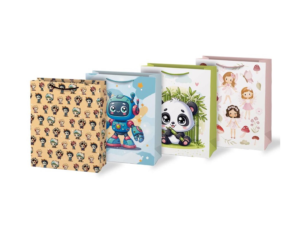 Papierová darčeková taška T5 s detským motívom v štyroch rôznych prevedeniach. Je ideálna na darovanie darčeka na narodeninovú oslavu, promóciu alebo inú významnú udalosť. Táto darčeková taška zaujme svojím vzhľadom a zároveň poteší každé dieťa. Takto zabalený darček urobí dieťaťu radosť a vytvorí nezabudnuteľný zážitok. Praktické rukoväte sú vyrobené z pevného materiálu, ktorý zabezpečuje ľahké prenášanie. Motív: mix detských motívov Rozmery: 260 x 320 x 138 mm Dodávame v mixe 4 ks podľa skladových zásob. Uvedená cena je za 1 ks.Dodatočné parametre