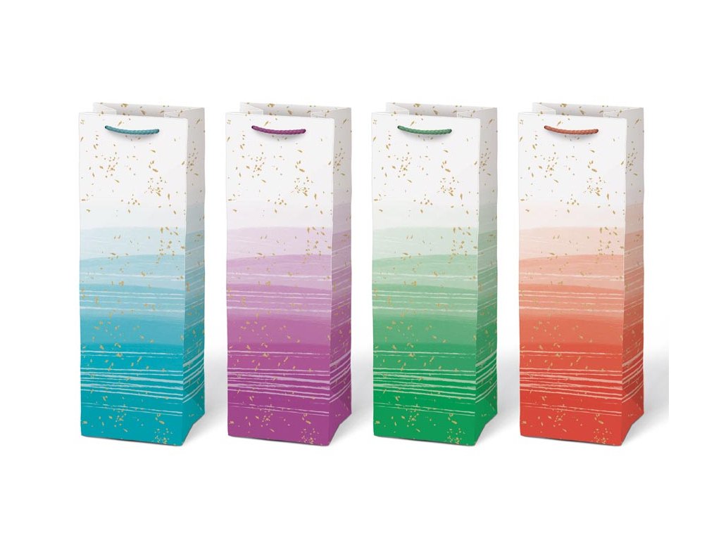 Papierová darčeková taška T12 v kombinácii farieb je vhodná na rôzne druhy fliaš, nielen na víno. Možno ju použiť aj na likéry, oleje alebo iné nápoje vo fľašiach. Táto štýlová taška je vybavená pevným držadlom na jednoduché a pohodlné prenášanie. Používanie darčekovej tašky eliminuje potrebu zložitého balenia. Darujte fľašu originálnym a elegantným spôsobom. Farba: mix farieb Veľkosť: 120 x 360 x 100 mm Dodávame v mixe 4 ks podľa skladových zásob. Uvedená cena je za 1 ks.Dodatočné parametre
