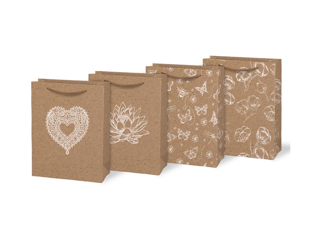 Objavte darčekovú tašku M KRAFT, ktorá spája prírodné kúzlo s praktickým využitím! S jemnými bielymi vzormi a šnúrkovými uchami premení každé prekvapenie na malý dizajnový zážitok. Perfektná voľba pre každú príležitosť – od narodenín po svadby a vďaka prírodnému vzhľadu zaujmú svojou jednoduchou eleganciou. Štýlová, pevná a šetrná k prírode - tašká, ktorá zanechá dojem! MOTIV: - srdce - lekno - vážky, motýle, včely - kvety Farba: hnedá/prírodná Materiál: kraftový papier Rozmer: 190 x 250 x 90 mm Dodávame v mixe po 4 ks podľa skladovej zásoby. Uvedená cena je za 1 ks.Dodatočné parametre