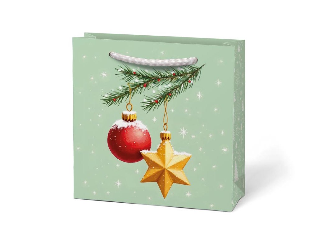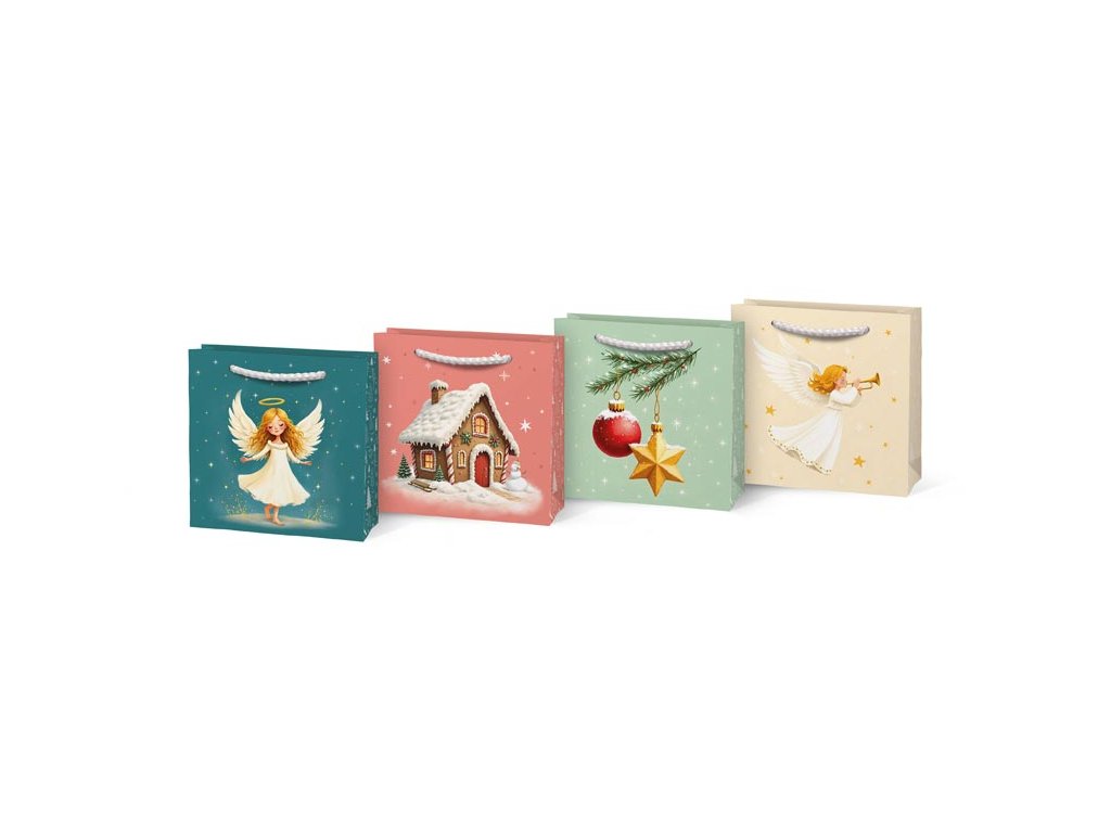 Krásne balenie pre sviatočné okamihy! Darčeková papierová taška T0 s čarovným vianočným motívom – ideálna na drobné darčeky, šperky, priania alebo malú pozornosť od srdca. Ilustrácie anjelikov, vianočných ozdôb a zasneženej chalúpky vytvárajú tú pravú sviatočnú atmosféru. Vďaka malému formátu pôsobí taška milo a osobne – ako drobná pozornosť, ktorá poteší ešte pred rozbalením. Taška je doplnená bielymi šnúrkovými ušami, ktoré sú praktické a ladia s celkovým vzhľadom. Skvelá voľba na sviatočné balenie drobných darčekov s vianočnou náladou. Rozmery: 90 × 90 × 40 mm Farba: petrolejová, lososová, svetlozelená, béžová Motív: vianočný – anjeli, zimná chalúpka, ozdoby a sviatočné dekorácie Dodávame v mixe 4 motívov podľa aktuálnej skladovej dostupnosti. Uvedená cena je za 1 ks.Dodatočné parametre