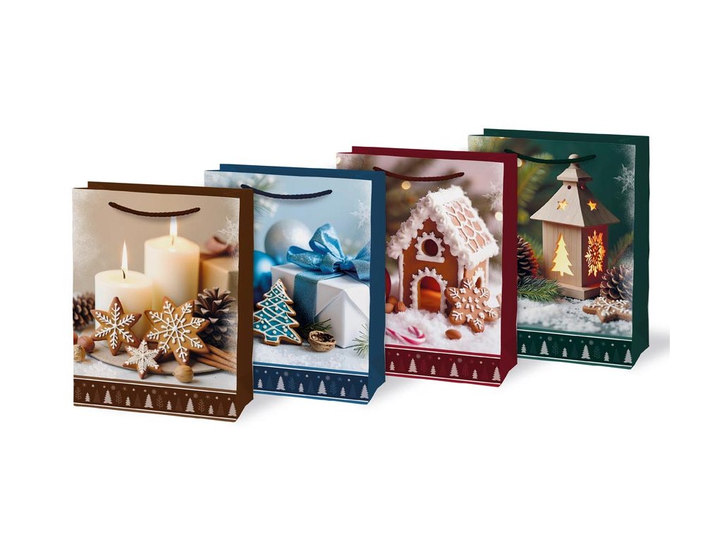 Dárková papírová taška s vánočním motivem.Dodatočné parametre