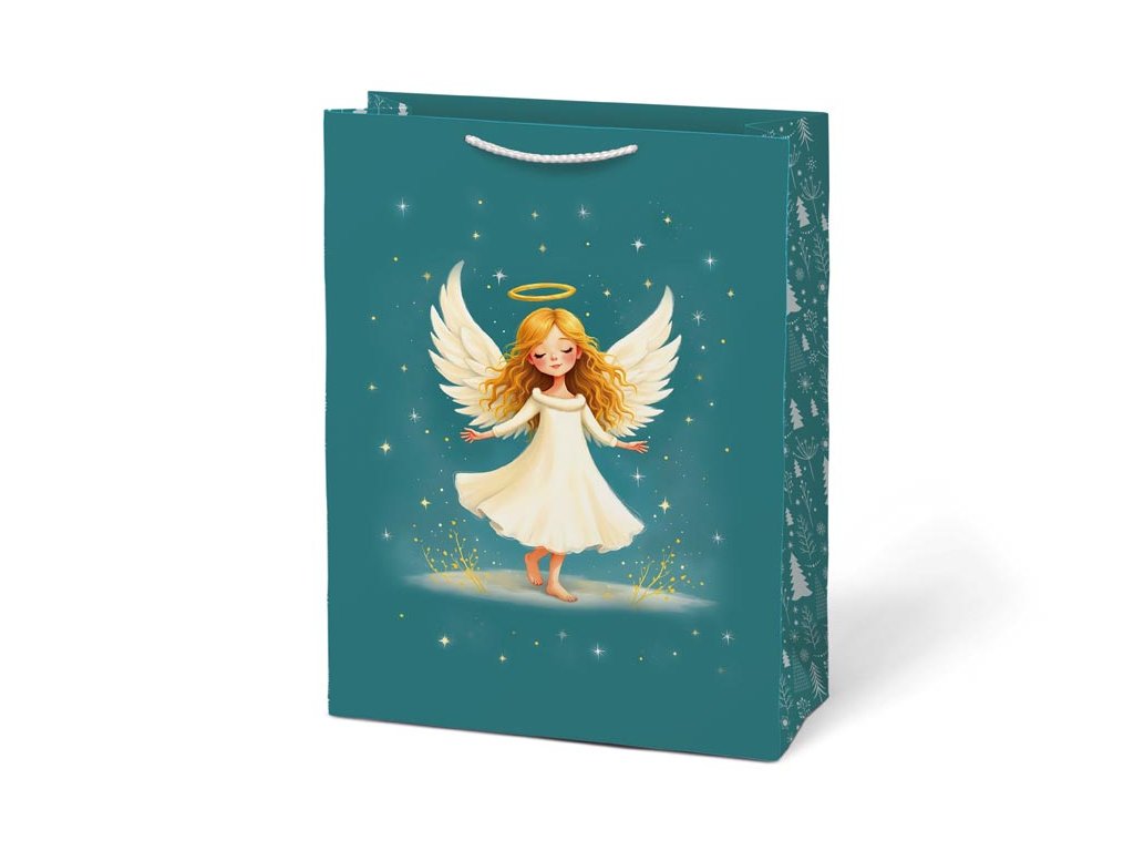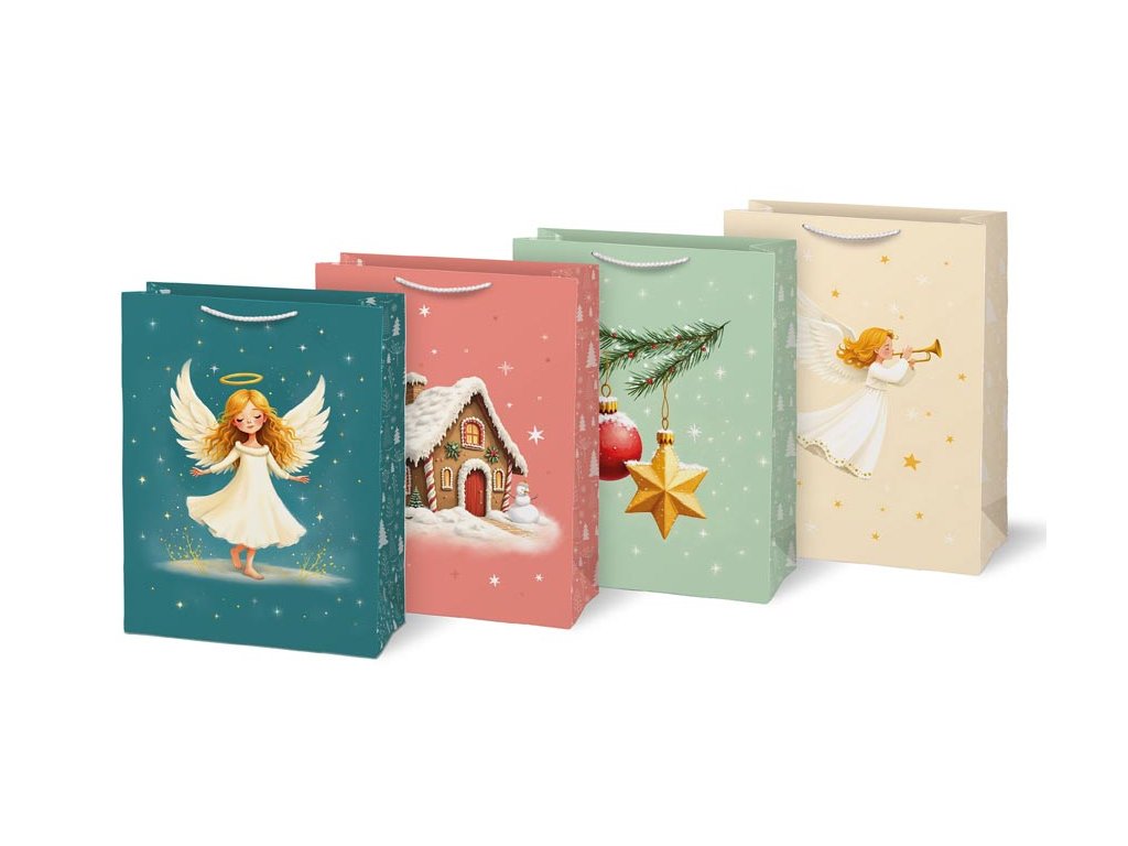 Chystáte sa darovať naozaj veľké prekvapenie? Vianočná darčeková papierová taška MFP T14 vám ušetrí čas s balením a pritom dodá darčeku slávnostný vzhľad. Vďaka extra priestranným rozmerom sa do nej ľahko zmestia hračky, krabice, textil alebo viac menších darčekov naraz. Rozmery: 405 × 555 × 205 mm Farba: petrolejová, lososová, svetlozelená, béžová Motív: vianočný – anjeli, zimná chalúpka, ozdoby a sviatočné dekorácie Dodávame v mixe 4 motívov a farieb podľa aktuálnej skladovej dostupnosti. Uvedená cena je za 1 ks.Dodatočné parametre