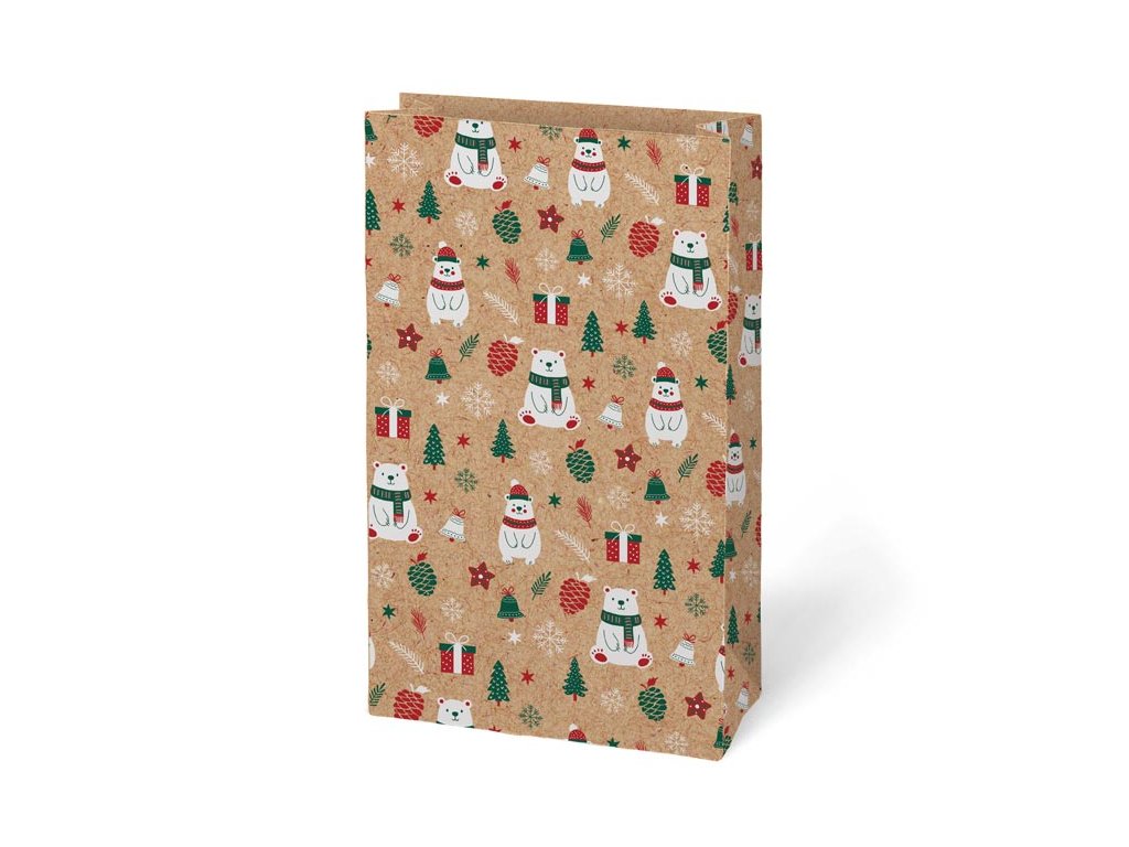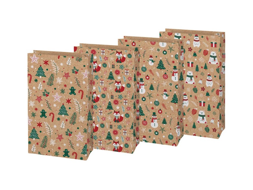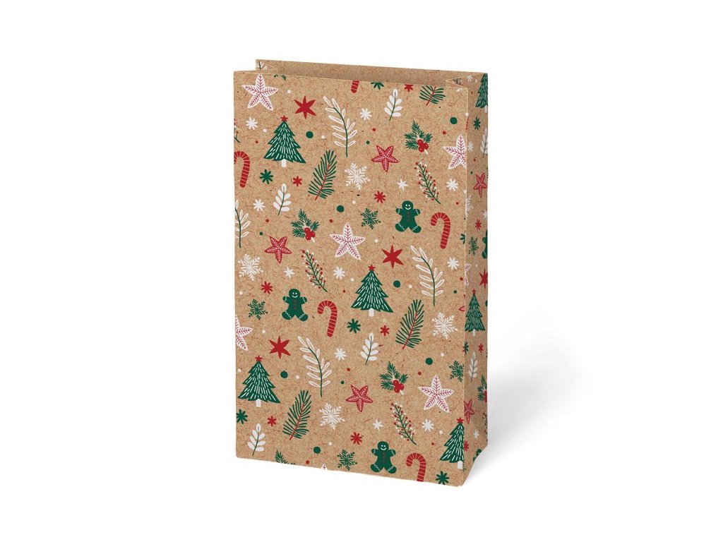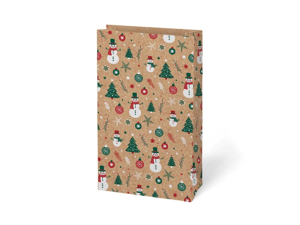 Krásne balenie urobí z každého darčeka ešte väčšiu radosť. Vianočný darčekový papierový sáčok KRAFT 4 je vyrobený z kvalitného kraftového papiera, ktorý je pevný, recyklovateľný a ekologický. Prírodný hnedý podklad doplnený o veselé vianočné motívy pôsobí elegantne, hravo a dokonale zapadne do sviatočnej atmosféry. Vďaka praktickým rozmerom je vhodný na sladkosti, menšie dekorácie, kozmetiku či iné drobné pozornosti. Sáčok šetrí čas aj prácu – stačí vložiť darček a máte elegantne zabalené. Balenie: 12 ks Gramáž: 120 g Motív: vianočný Materiál: kraftový papier Rozmer: 150 × 270 × 90 mm Dodávame v mixe 4 motívov podľa aktuálnej skladovej dostupnosti. Uvedená cena je za 1 ks.Dodatočné parametre