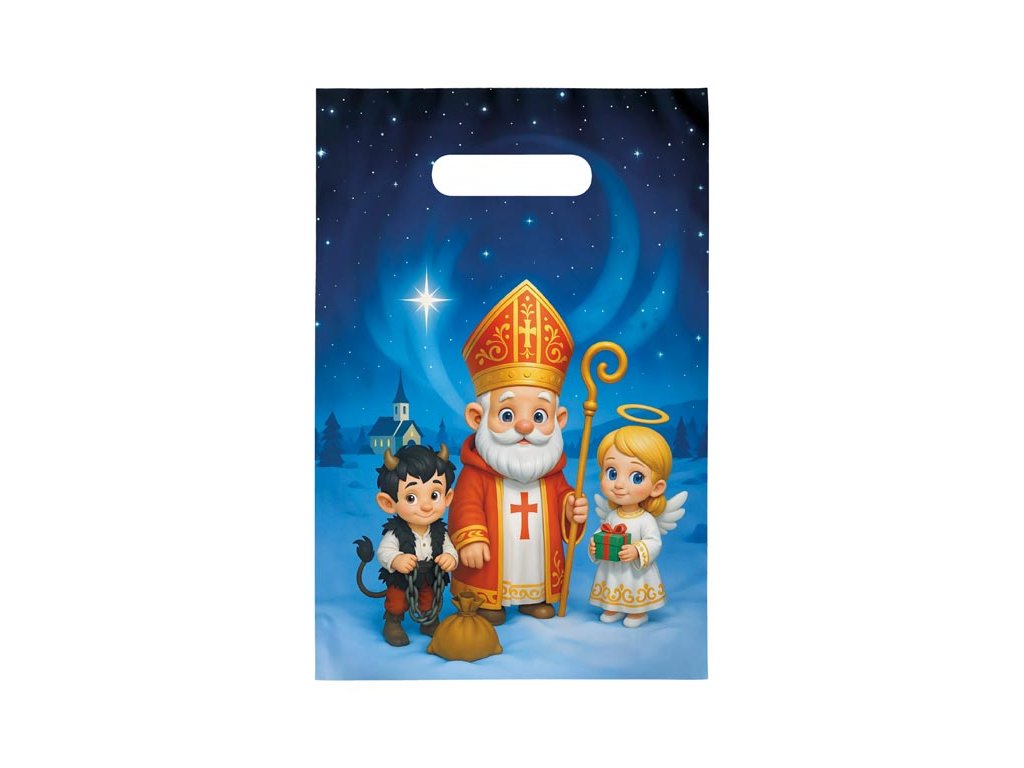 Krásne balenie pre sviatočné prekvapenie! Vneste do sviatočného obdobia čaro tradičnej mikulášskej nádielky s originálnou mikulášskou darčekovou taškou, ktorá poteší malých aj veľkých. Tento veselý motív Mikuláša, anjela a čertíka na zasneženom pozadí pod hviezdnou oblohou rozžiari každý balíček a dodá mu tú pravú sviatočnú atmosféru. Taška je ideálna na balenie sladkostí, ovocia alebo malých darčekov. Vďaka praktickému prierazu sa jednoducho prenáša a skvelo poslúži pri mikulášskej nádielke doma aj v školských kolektívoch. Materiál: PE Rozmer: 200 × 300 × 80 mm Praktické balenie: odtrhávací blok Uvedená cena je za 1 ks.Dodatočné parametre